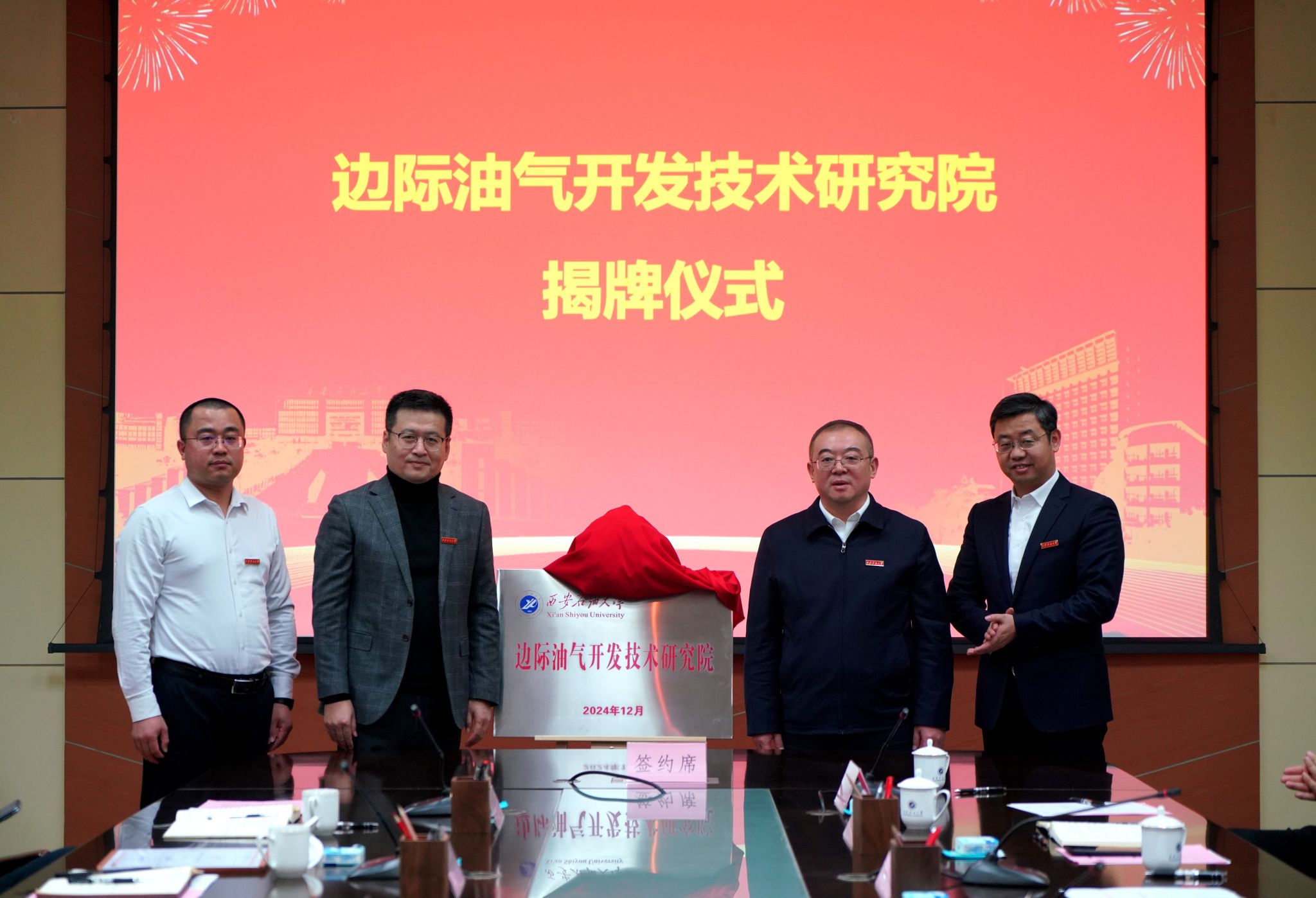 學(xué)校黨委書記常江、校長(zhǎng)王進(jìn)富、石油工程學(xué)院院長(zhǎng)黃海、邊際油氣開發(fā)技術(shù)研究院崔仕章共同為邊際油氣開發(fā)技術(shù)研究院揭牌。