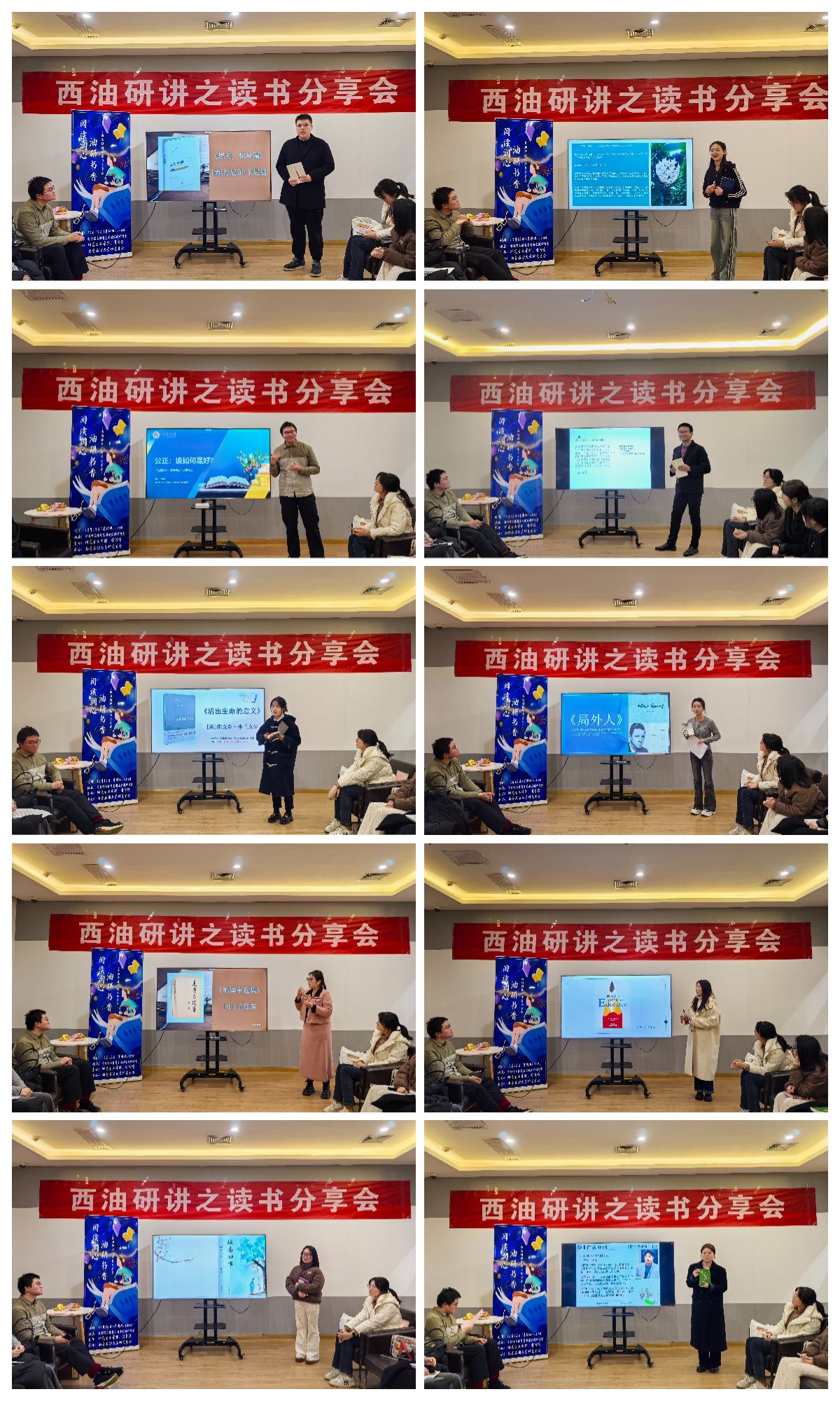 “西油研講”是研究生工作部推出的一項研究生創(chuàng)新教育平臺,“研講”將聚焦研究生發(fā)展需求,精心設(shè)計服務(wù)菜單和分享內(nèi)容,開展涵蓋思政教育、學(xué)術(shù)科研、創(chuàng)新實踐、校園生活、職業(yè)規(guī)劃和心理健康等各個方面,旨在激勵研究生自強不息、砥礪奮進、刻苦鉆研,提升知識創(chuàng)新和實踐創(chuàng)新能力。此次讀書分享會是“西油研講”首期活動,吸引了眾多研究生的積極參與,展現(xiàn)了我校研究生積極向上的精神風(fēng)貌和深厚的學(xué)術(shù)底蘊。