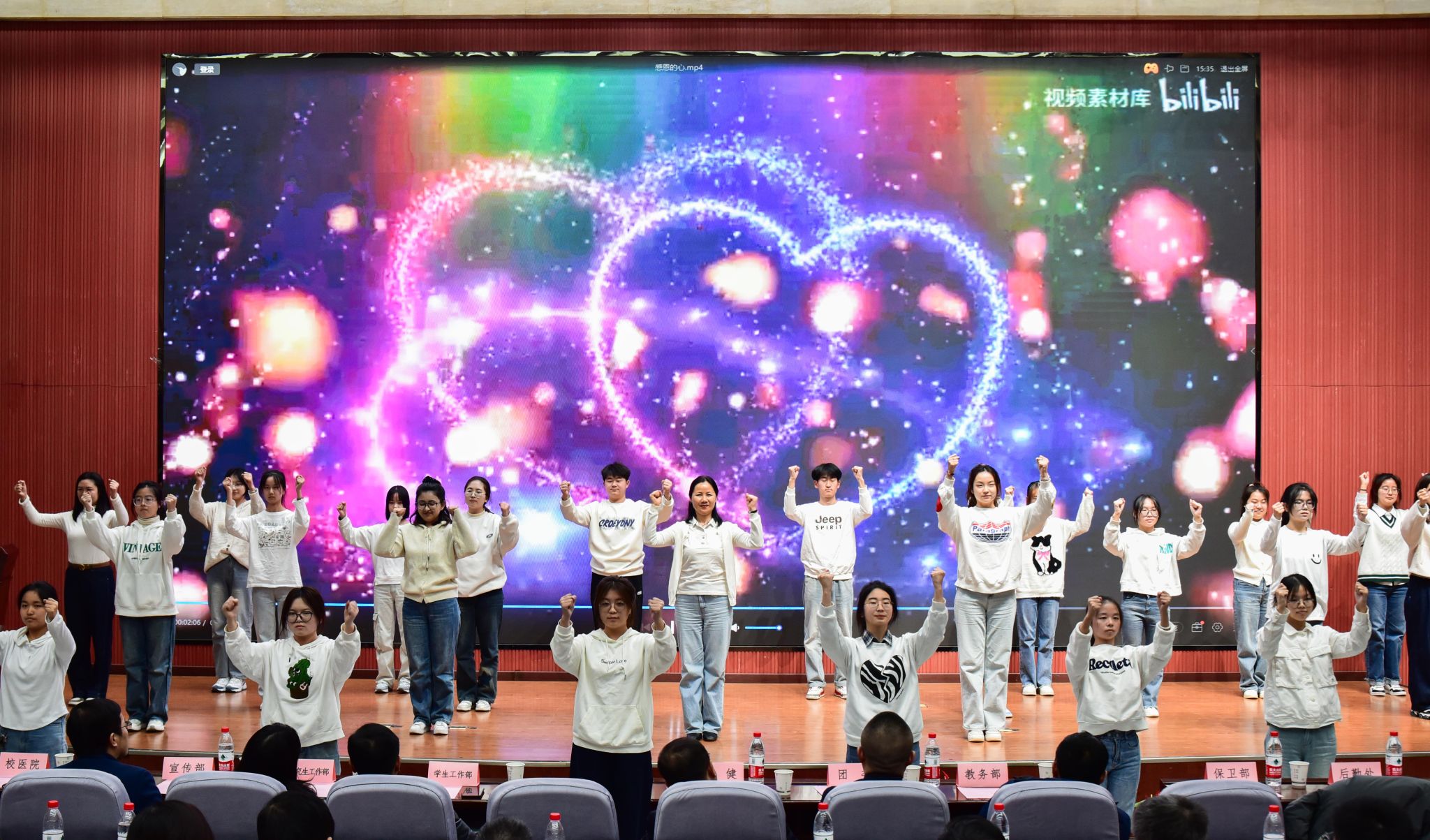 會間,2024年心理育人優(yōu)秀實(shí)踐作品的部分成果,通過視頻展播和現(xiàn)場展示的方式,向大家進(jìn)行了匯報(bào)。材料類2401班心理委員白雨涵現(xiàn)場展示了“朋輩互助 友愛班級”心理健康教育主題班會一等獎作品《友愛互助 從心出發(fā)——人際關(guān)系你、我、TA》。通過視頻,現(xiàn)場展播了“心情故事 靈動主角”校園心理情景劇一等獎、石油工程學(xué)院作品《重啟的軌跡》以及《心理健康教育》課程推薦的優(yōu)秀工作坊作品、計(jì)算機(jī)學(xué)院計(jì)類2301/2302作品《優(yōu)等生》。匯報(bào)表彰會在由學(xué)生心理成長指導(dǎo)中心教師、院系心理專干,大學(xué)生心理協(xié)會、心理委員聯(lián)合協(xié)會代表表演的手語舞《感恩的心》中落下帷幕。