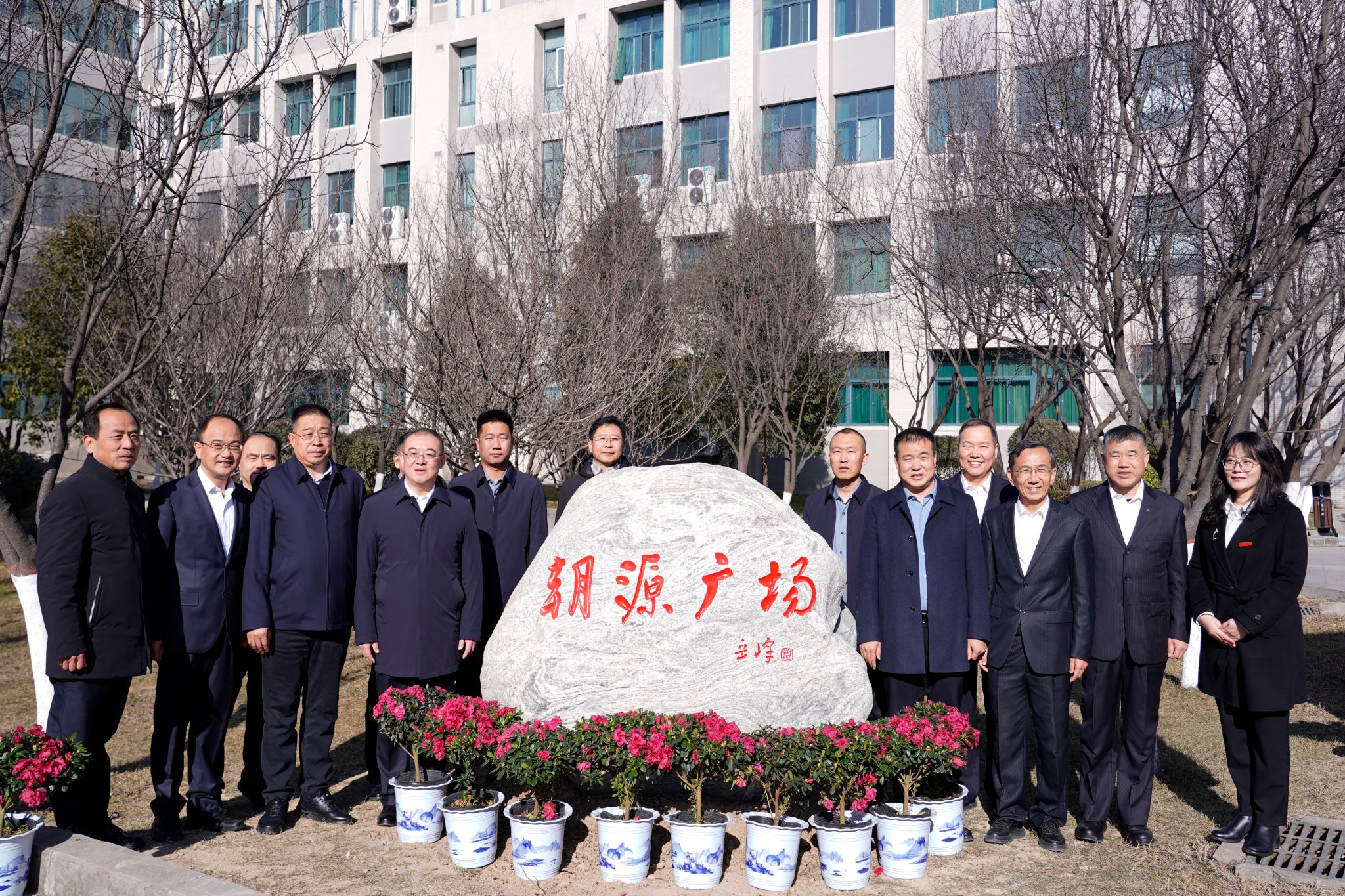 張木詳細(xì)介紹了“朝源廣場”冠名的背景、意義。為銘記朝源礦業(yè)捐資助學(xué)義舉,學(xué)校決定將鄠邑校區(qū)博覽樓中心廣場冠名為“朝源廣場”,刻石留念。