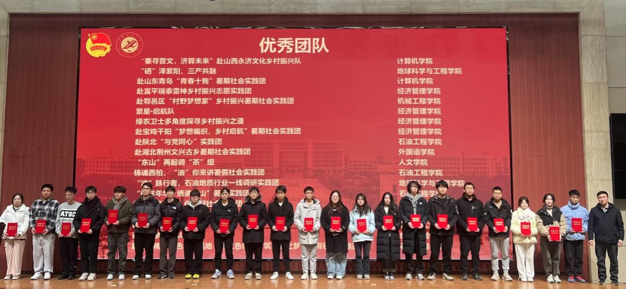 會(huì)上,校團(tuán)委負(fù)責(zé)人宣讀了《關(guān)于2024年西安石油大學(xué)大學(xué)生暑期社會(huì)實(shí)踐活動(dòng)的表彰通知》《關(guān)于開(kāi)展西安石油大學(xué)2025年大學(xué)生寒假“返家鄉(xiāng)”社會(huì)實(shí)踐的通知》,趙健為2025年寒假“返家鄉(xiāng)”社會(huì)實(shí)踐團(tuán)隊(duì)代表授旗,與會(huì)部門(mén)負(fù)責(zé)人分別為2024年暑期社會(huì)實(shí)踐先進(jìn)個(gè)人代表、優(yōu)秀團(tuán)隊(duì)、標(biāo)兵團(tuán)隊(duì)、優(yōu)秀指導(dǎo)老師、優(yōu)秀組織單位頒發(fā)了證書(shū)和獎(jiǎng)牌。經(jīng)濟(jì)管理學(xué)院商管2302班吳宇星同學(xué)代表2024年暑期社會(huì)實(shí)踐獲獎(jiǎng)團(tuán)隊(duì)作了交流發(fā)言。