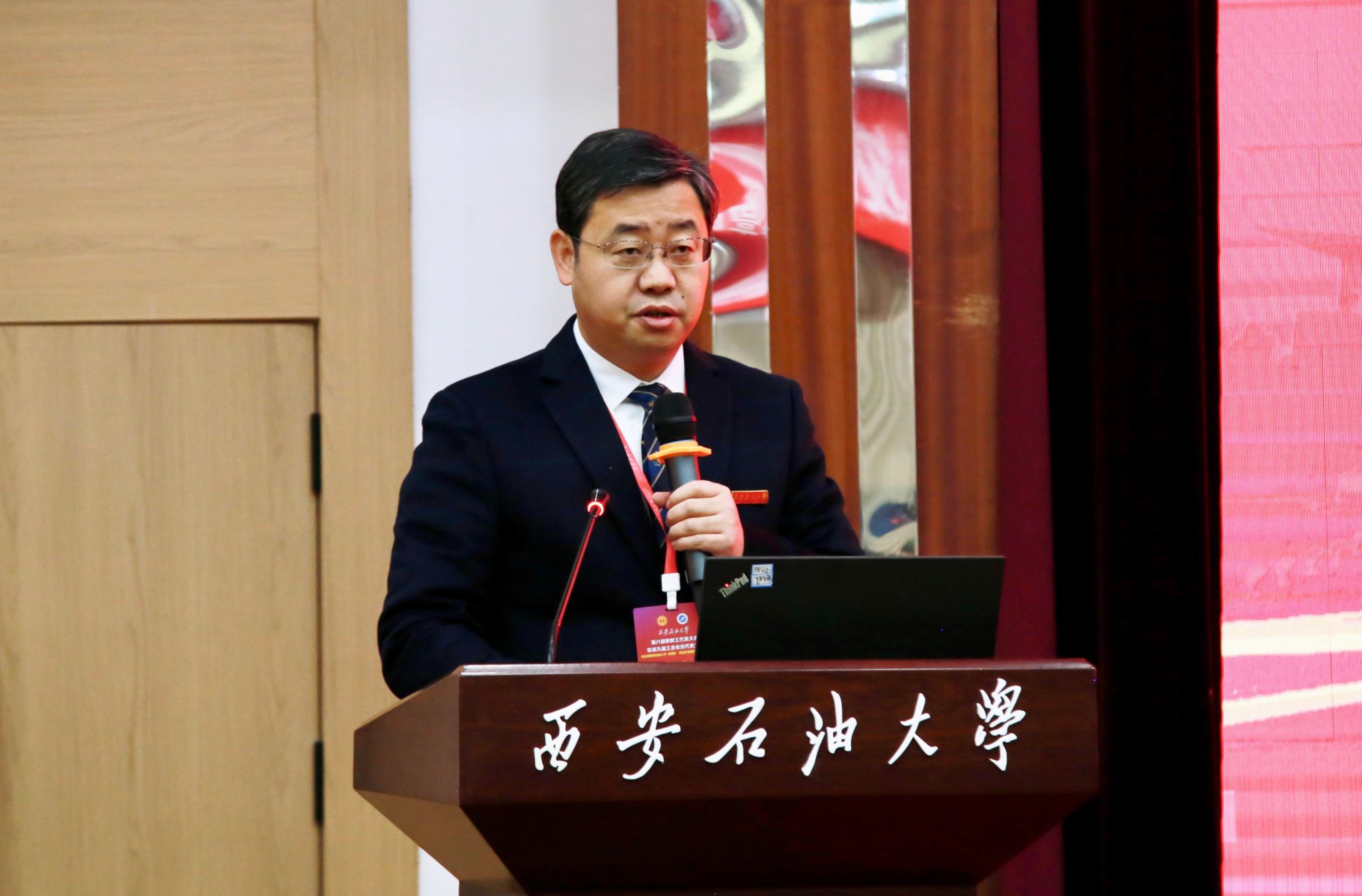 陜西省教科文衛(wèi)體工會主席徐富權(quán)在開幕會上致詞。他對我校召開第八屆教職工代表大會暨第九屆工會會員代表大會表示熱烈祝賀,并對近年來我校工會認真履行工會、教代會各項職能,促進學(xué)校各項事業(yè)高質(zhì)量發(fā)展等方面的重要作用給予了充分肯定。他希望學(xué)校工會進一步提高政治站位,確保工會工作沿著正確方向前行,切實滿足教職工高品質(zhì)生活需要,全面提升工會工作水平。