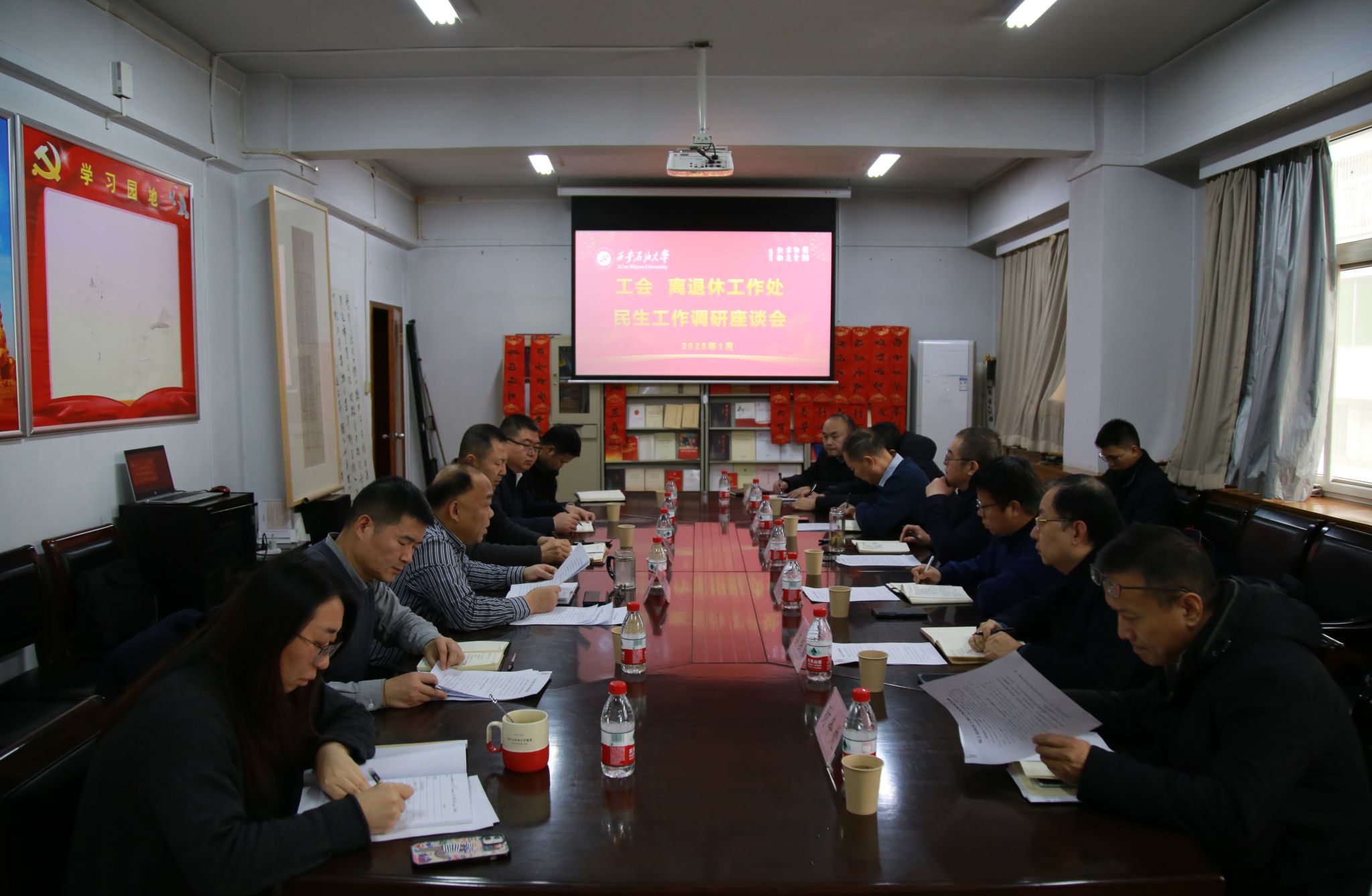 1月17日下午,校黨委書記常江到工會(huì)、離退休工作處就民生工作進(jìn)行調(diào)研座談,副校長(zhǎng)張驍勇參加調(diào)研并主持座談會(huì)。