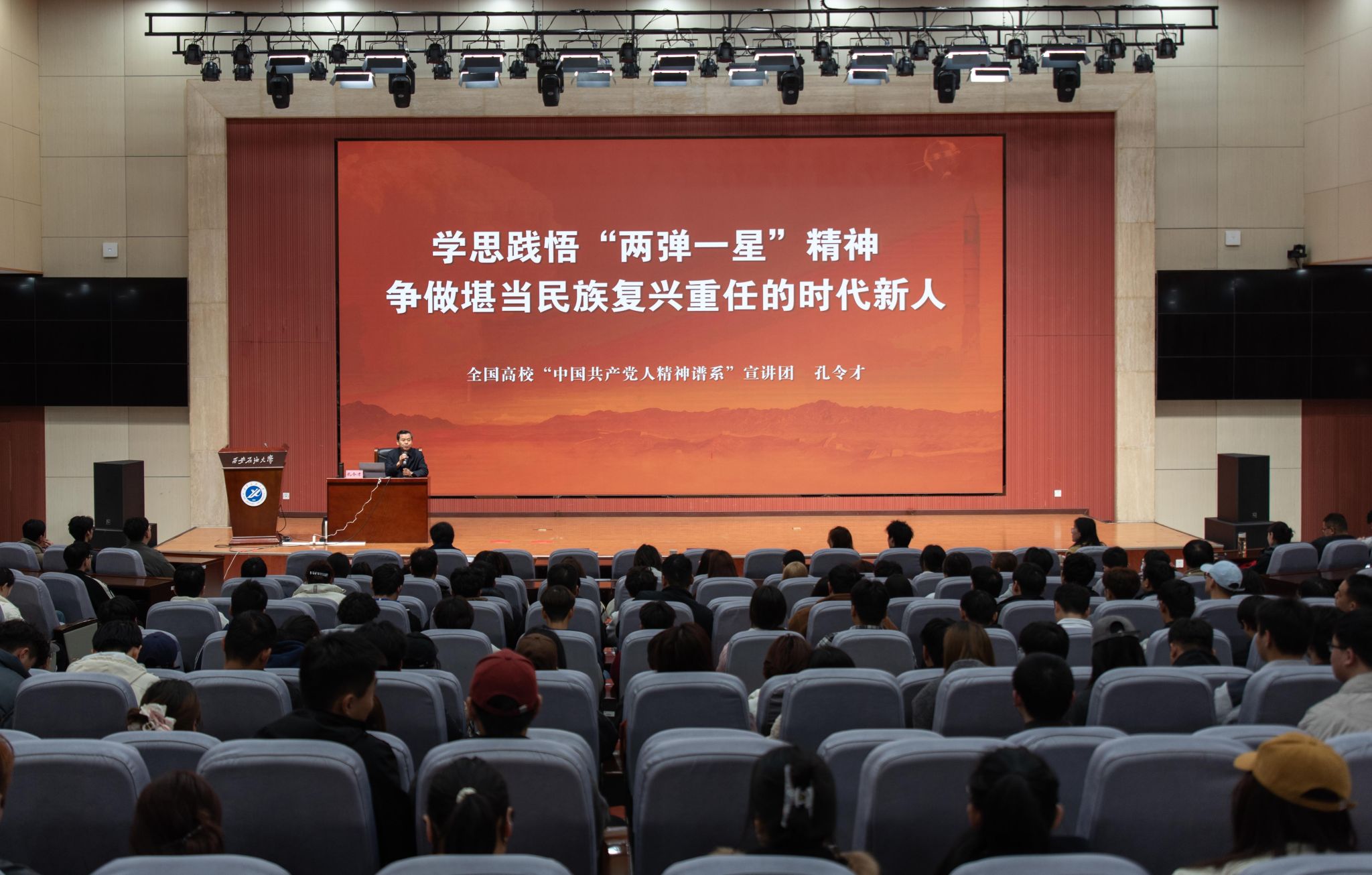 報告會上,孔令才將軍通過大量的史實和人物故事,帶領(lǐng)師生重回“兩彈一星”事業(yè)發(fā)展的崢嶸歲月,深刻感悟以“熱愛祖國、無私奉獻,自力更生、艱苦奮斗,大力協(xié)同、勇于登攀”為內(nèi)核的“兩彈一星”精神。