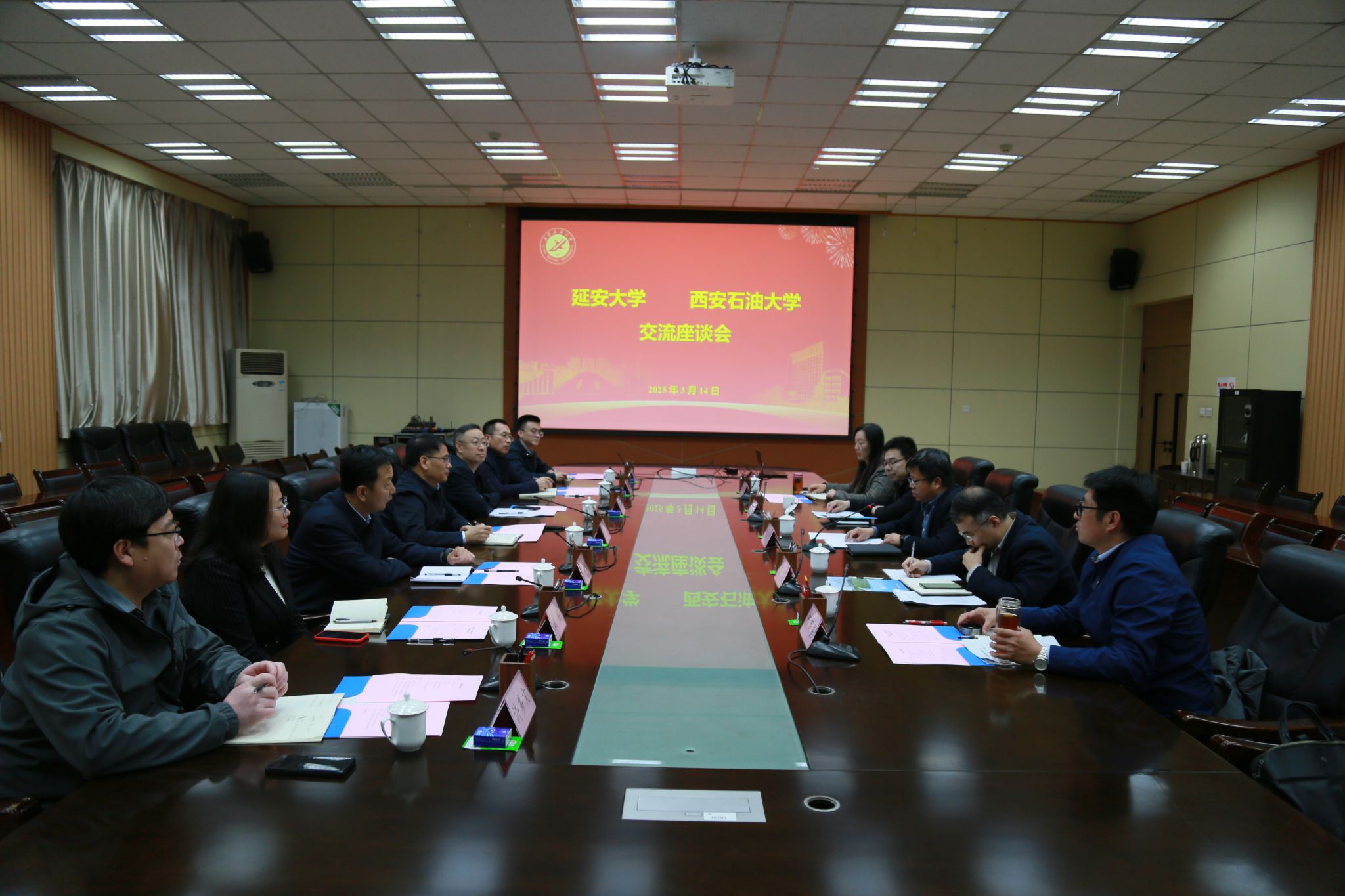 座談會上,張驍勇對呂磊一行的到來表示熱烈歡迎,并簡要介紹了學(xué)校的基本情況、辦學(xué)特色以及在人才培養(yǎng)、科學(xué)研究等方面取得的成果。他指出,西安石油大學(xué)是習(xí)仲勛等老一輩無產(chǎn)階級革命家親切關(guān)懷、倡導(dǎo)創(chuàng)立,最早建設(shè)、長期布局在我國西北地區(qū)的唯一一所以石油石化為特色的多科性普通高等學(xué)校,始終堅持石油精神辦學(xué)、鐵人精神育人、延安精神鑄魂,全面落實立德樹人根本任務(wù)。延安大學(xué)與我校同根同源,是由中共中央西北局決定創(chuàng)立的紅色大學(xué),具有優(yōu)良的革命傳統(tǒng)和光輝的辦學(xué)歷程,走出了一條紅色育人實踐之路,為社會發(fā)展和區(qū)域經(jīng)濟建設(shè)培養(yǎng)了大批優(yōu)秀人才。希望兩校今后進一步加強合作,互學(xué)互鑒,共同發(fā)展,再創(chuàng)輝煌。
