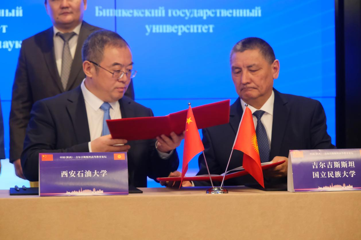 論壇上,常江與吉爾吉斯斯坦國立民族大學(xué)校長多格杜爾別克·瓊托耶夫分別代表兩校簽署合作備忘錄。我校國際交流與合作處負(fù)責(zé)人董皓在院校推介環(huán)節(jié)分享了學(xué)校國際合作概況。