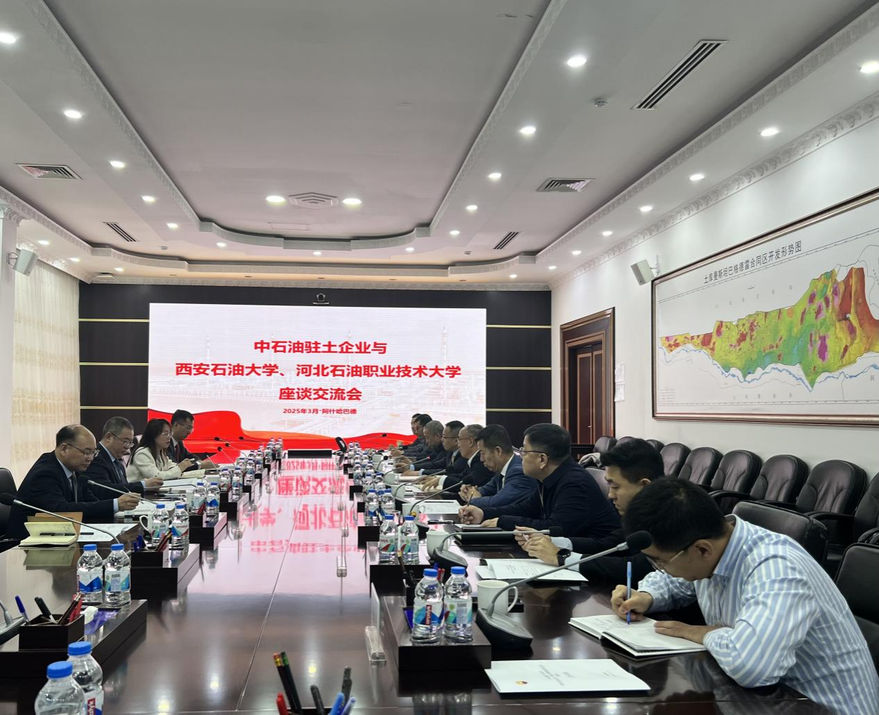 3月15日,代表團(tuán)赴中石油中吉天然氣管道公司參訪座談。雙方回顧并一致肯定了中吉校企合作人才培養(yǎng)項(xiàng)目取得的成果及其意義,就項(xiàng)目畢業(yè)生回國后的工作情況進(jìn)行交流,并就未來可開拓的合作領(lǐng)域與合作戰(zhàn)略布局進(jìn)行深入探討。