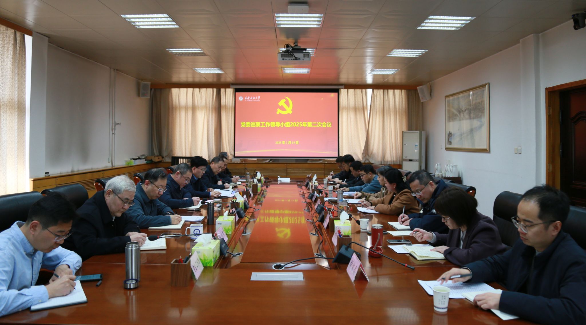 3 月19日下午,學(xué)校在雁塔校區(qū)辦公樓五樓會(huì)議室召開黨委巡察工作領(lǐng)導(dǎo)小組2025 年第二次會(huì)議,審議第三屆黨委第一輪巡察情況報(bào)告。校黨委書記、黨委巡察工作領(lǐng)導(dǎo)小組組長常江出席會(huì)議并講話。校黨委巡察工作領(lǐng)導(dǎo)小組成員單位和黨委統(tǒng)戰(zhàn)部、黨委學(xué)生工作部、黨委保衛(wèi)部、研究生工作部主要負(fù)責(zé)人參加會(huì)議。會(huì)議由校黨委副書記、紀(jì)委書記、監(jiān)察專員、黨委巡察工作領(lǐng)導(dǎo)小組副組長王輝強(qiáng)主持。