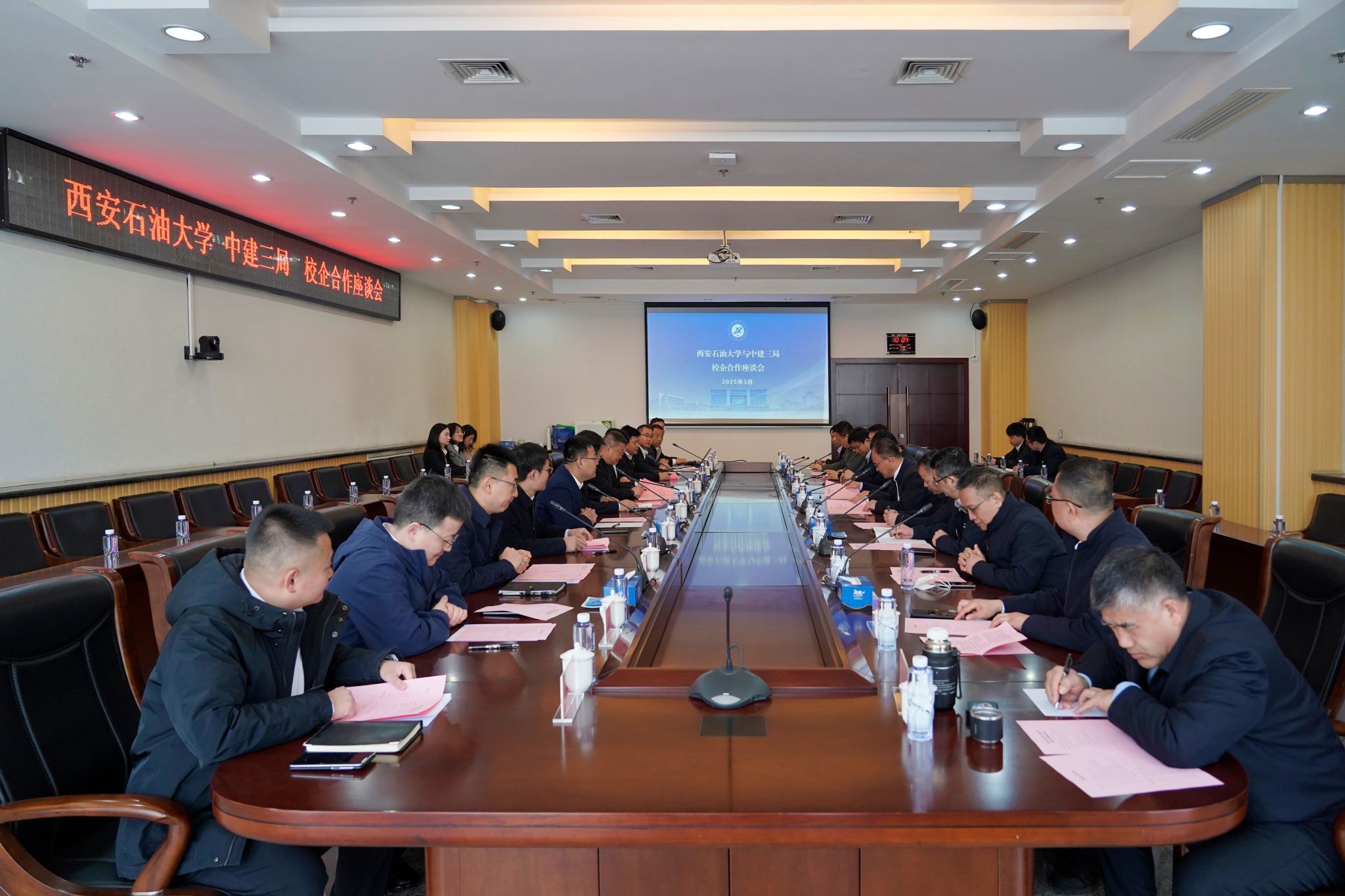 3月30日上午,我校與中建三局校企合作交流座談會在鄠邑校區(qū)圖書館第二會議室進行。中建三局副總經(jīng)理羅宏、中建三局西北公司黨委書記、董事長盧華勇等中建三局領導以及我校黨委副書記、校長王進富出席會議。會議由副校長趙健主持。