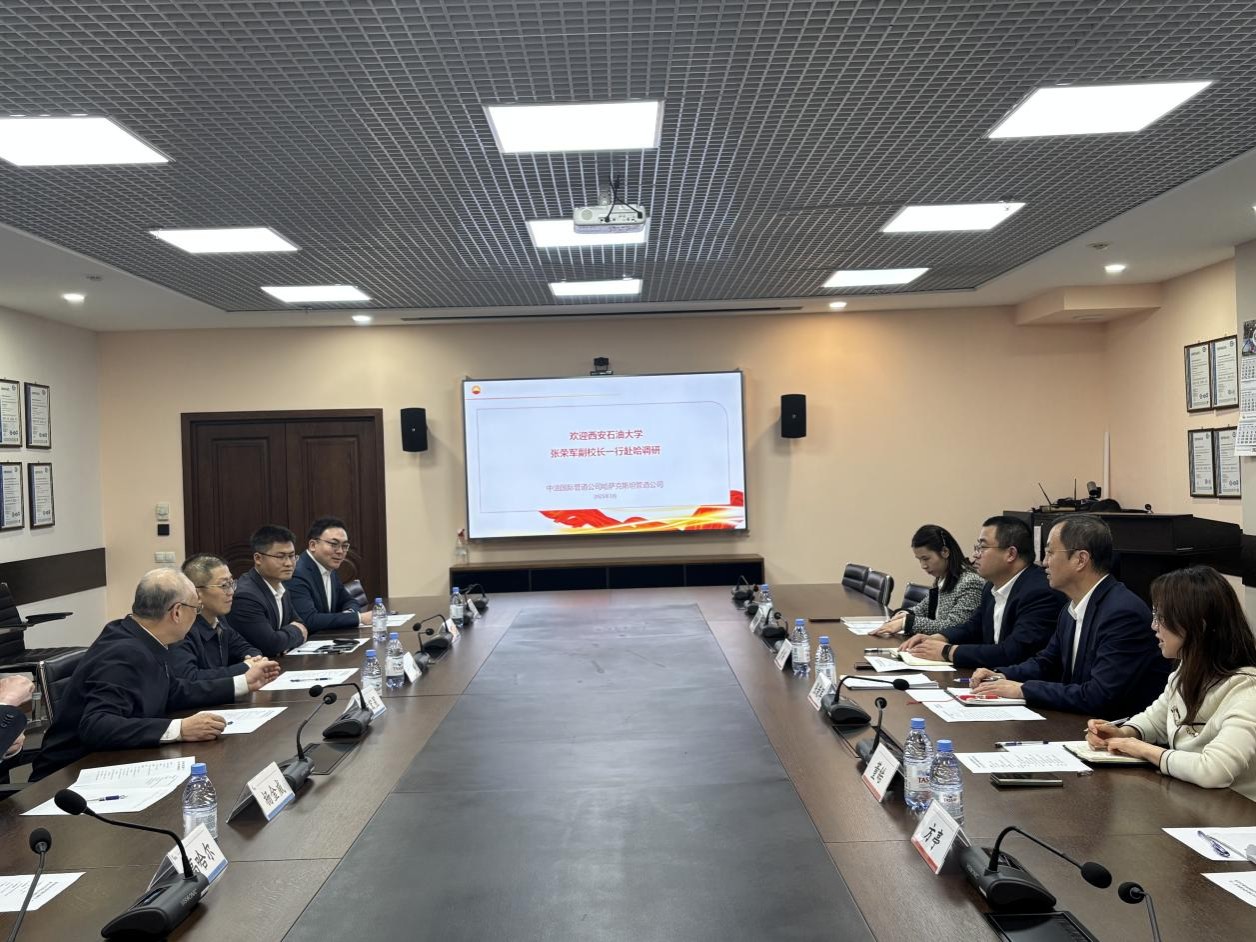 3月29日,張榮軍與華油能源集團(tuán)哈薩克斯坦分公司領(lǐng)導(dǎo)和代表進(jìn)行會(huì)談。華油能源集團(tuán)哈薩克斯坦大區(qū)總經(jīng)理張磊、哈薩克斯坦大區(qū)阿拉木圖辦事處主任朱施霖、哈薩克斯坦大區(qū)克孜勒奧爾達(dá)項(xiàng)目部經(jīng)理袁再旺參加座談。雙方圍繞屬地化員工培訓(xùn)、人才輸送、技術(shù)攻關(guān)、實(shí)驗(yàn)室聯(lián)合建設(shè)等進(jìn)行深入探討。華油能源集團(tuán)哈薩克斯坦大區(qū)代表們還為學(xué)校面向哈薩克斯坦開展國際教育科技合作提供了寶貴的意見建議。