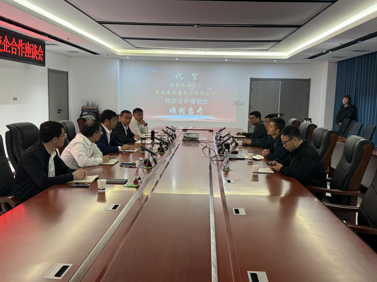 王鵬寶對學校領導的到訪表示感謝,并詳細介紹了公司的組織架構、業(yè)務范疇以及近年來取得的成績。他談到,作為校友企業(yè),西安思科賽實業(yè)有限公司在技術創(chuàng)新和產(chǎn)品研發(fā)方面不斷突破,為雙方提供了寶貴的合作機會。他希望雙方能夠進一步完善校企協(xié)同育人機制,創(chuàng)新人才培養(yǎng)模式,構建合作新機制,助力企業(yè)不斷轉(zhuǎn)型升級。