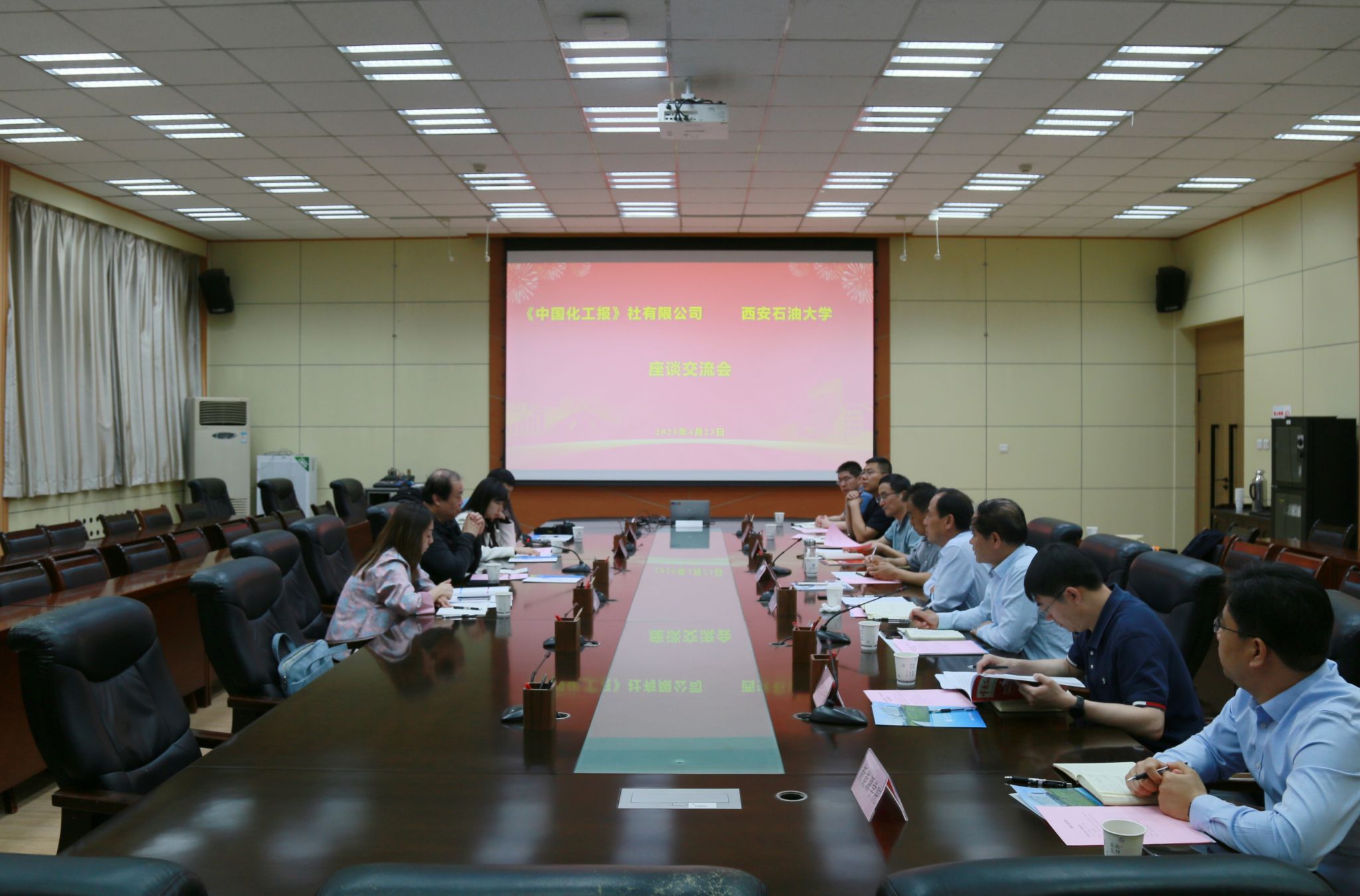 會(huì)上,我校科研處負(fù)責(zé)人介紹了學(xué)??蒲谐晒吨袊?guó)化工報(bào)》社介紹了公司情況。與會(huì)人員圍繞科技成果轉(zhuǎn)化、人才聯(lián)合培養(yǎng)、學(xué)生科技競(jìng)賽、學(xué)生實(shí)習(xí)就業(yè)、信息資源共享、申報(bào)行業(yè)協(xié)會(huì)獎(jiǎng)勵(lì)等校媒合作領(lǐng)域深入探討和交流。