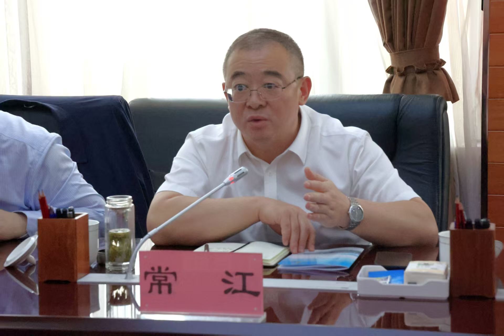 5月7日,常江一行到府谷縣與縣委書記杜志龍會晤并舉行交流座談會,縣委常委、常務副縣長丁煒、副縣長劉春雷及府谷縣各相關部門負責人參加會議。