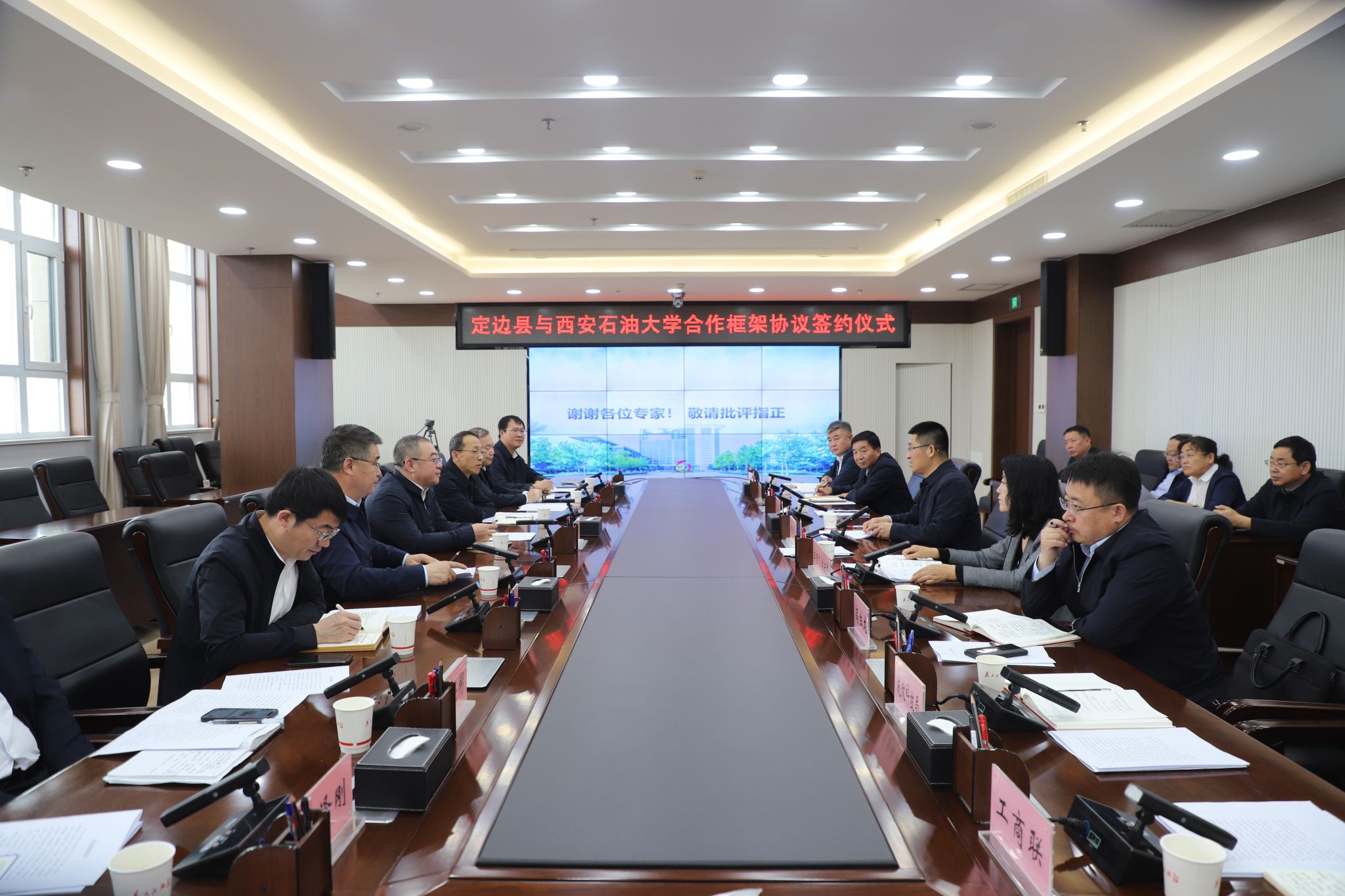 5月9日常江書記一行來到定邊縣,出席了校地合作協(xié)議簽署儀式暨座談會,定邊縣委書記姬世平,縣委常委、副縣長黨玉飛,以及定邊縣各相關職能部門及縣域所轄部分企業(yè)負責人參加了簽約儀式和座談會,會議由縣委常委、宣傳部部長劉云霞主持。