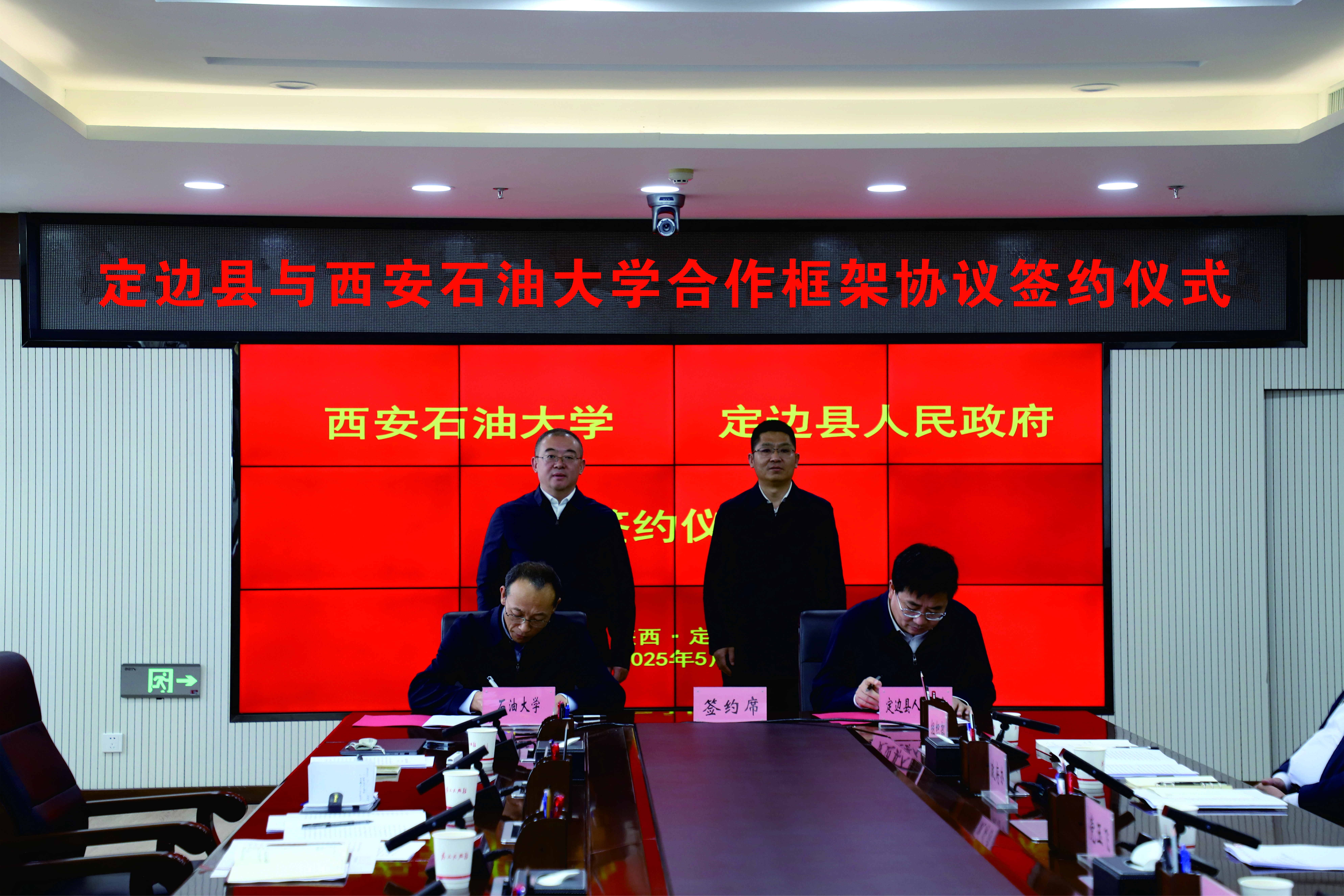 張君濤和黨玉飛分別代表學校和定邊縣政府共同簽署了《定邊縣人民政府與西安石油大學校企地合作框架協(xié)議》。協(xié)議明確了雙方將通過組建西安石油大學定邊油氣研究院、建立科技小院、加強人才交流、開展課題研究、組建油氣產(chǎn)業(yè)聯(lián)盟、培育孵化中小微油服企業(yè)等方式,助力定邊縣油氣上下游產(chǎn)業(yè)延鏈、補鏈、強鏈,推動石油天然氣行業(yè)綠色、高效、可持續(xù)發(fā)展。