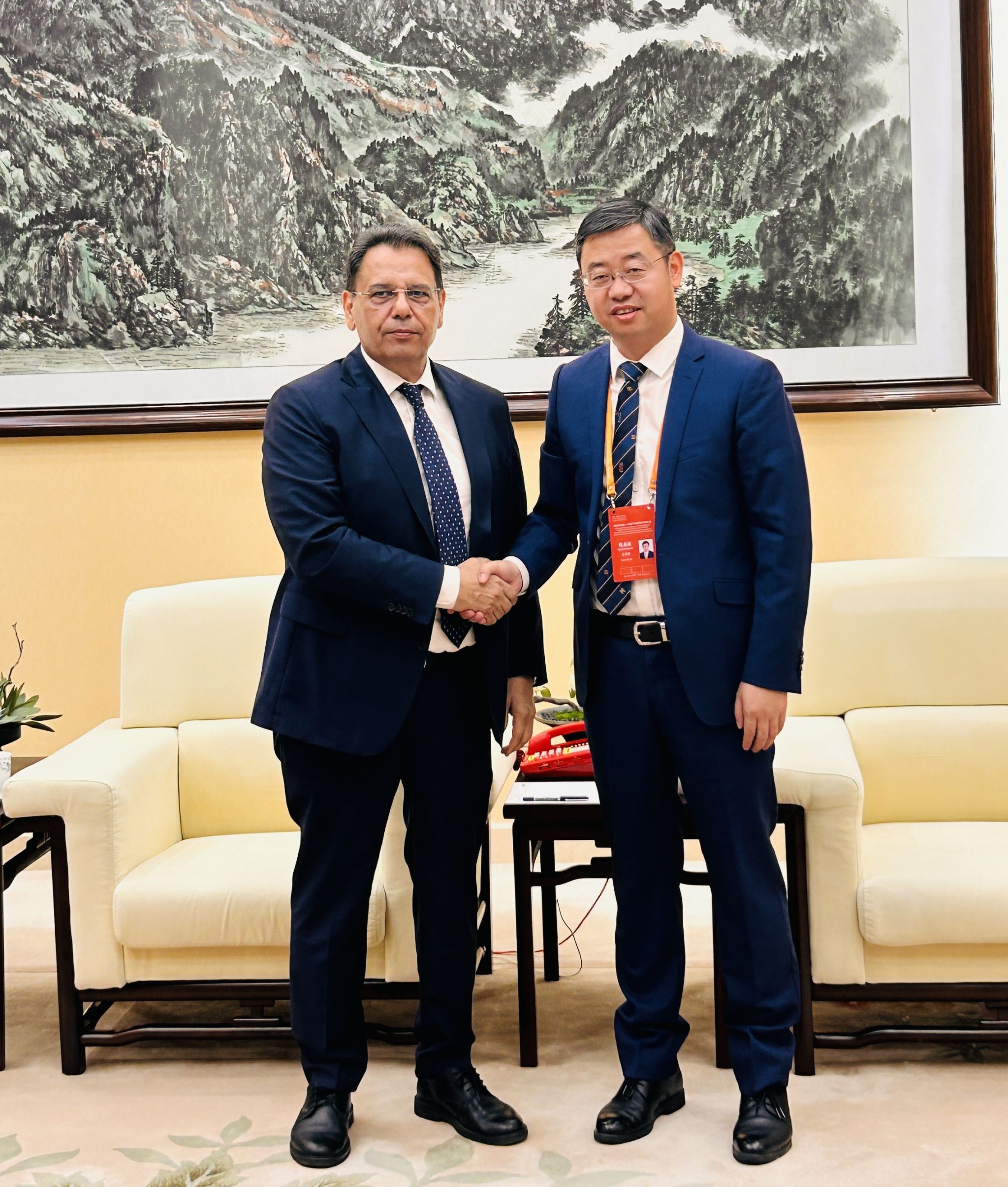 在2025中國—中亞產(chǎn)學(xué)研用合作會議期間,王進(jìn)富與來華出席此次會議的烏茲別克斯坦高等教育、科學(xué)與創(chuàng)新部部長孔格拉特拜·沙里波夫(Sharipov Kongratbay)會晤。雙方就我校烏茲別克斯坦分校建設(shè)工作進(jìn)行了深入交流。
