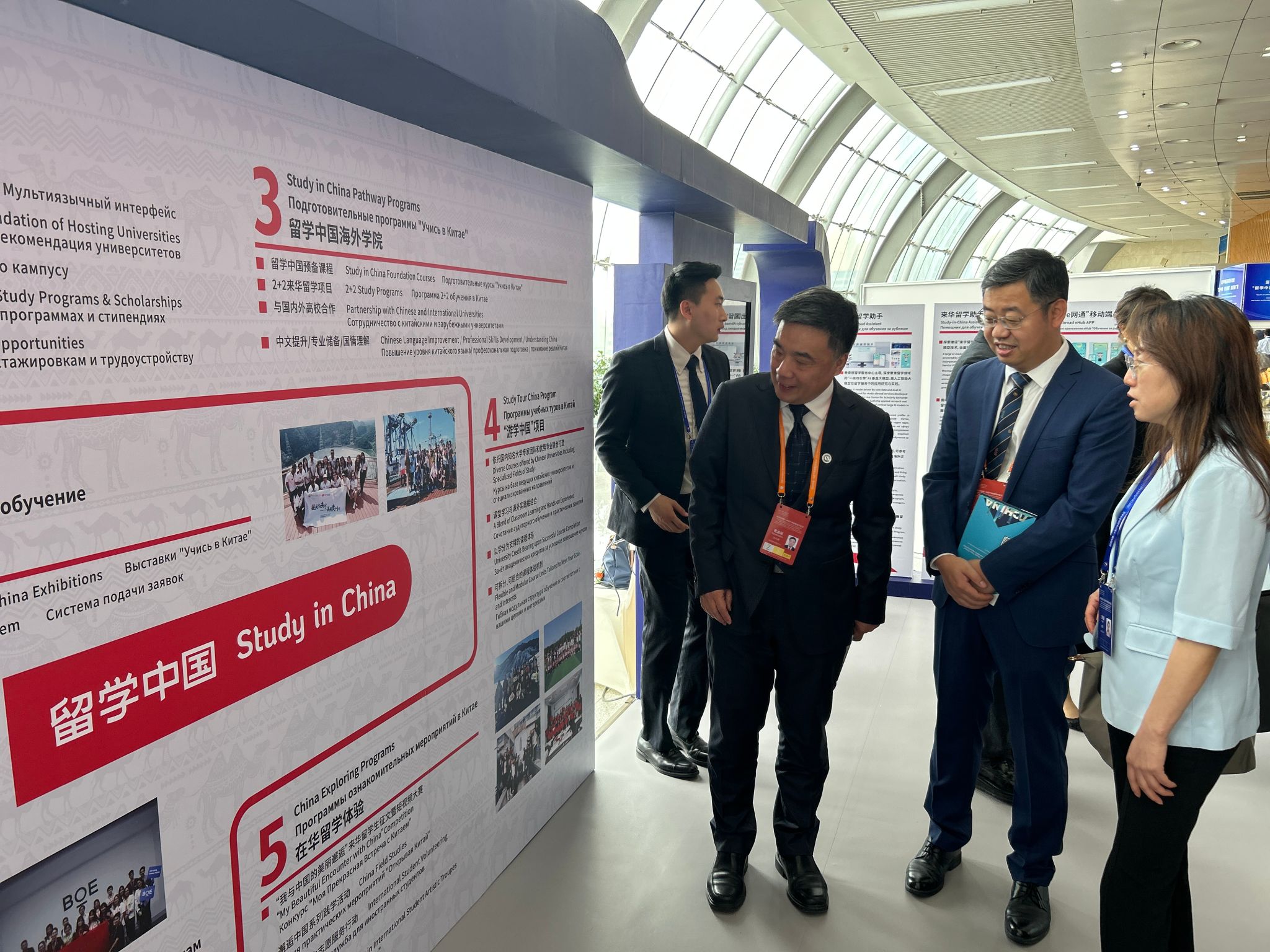 會議開始前,與會中外嘉賓參觀了留學(xué)中國品牌發(fā)布會暨“留學(xué)中國·學(xué)在新疆”教育展。