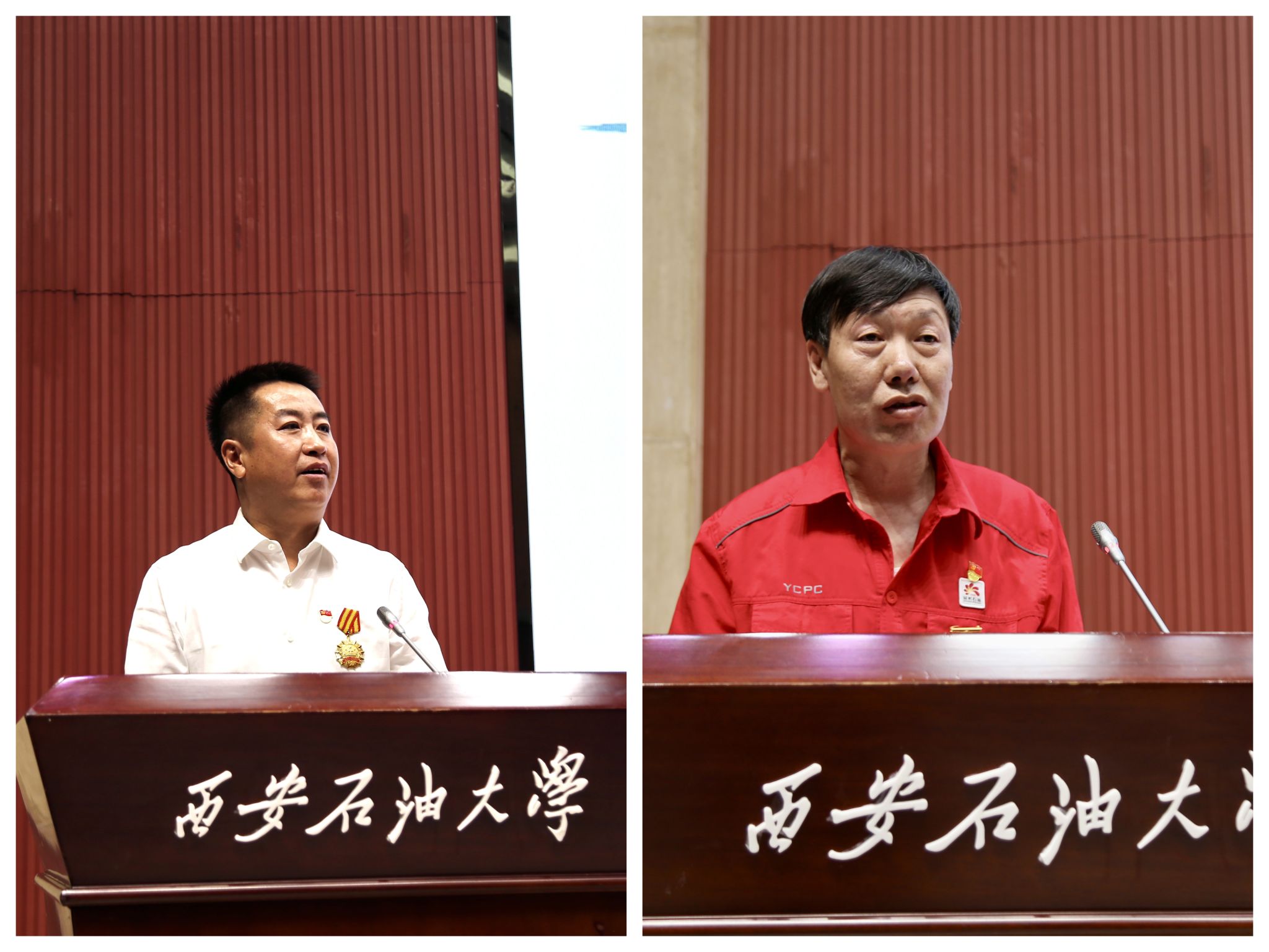 揭牌儀式結(jié)束后,“勞模工匠進(jìn)校園”現(xiàn)場(chǎng)報(bào)告會(huì)熱烈舉行。全國(guó)“五一”勞動(dòng)獎(jiǎng)?wù)芦@得者薛濤和全國(guó)勞動(dòng)模范張發(fā)珠分別做了題為《延長(zhǎng)油田精細(xì)注水開(kāi)發(fā)實(shí)踐與認(rèn)識(shí)》和《“土發(fā)明家”的創(chuàng)新實(shí)踐》的專(zhuān)題報(bào)告,用他們的親身經(jīng)歷生動(dòng)講述了油田人在產(chǎn)業(yè)報(bào)國(guó)和能源強(qiáng)國(guó)征途上“埋頭苦干、不怕困難”,“擇一事、終一生、干一行、專(zhuān)一行”,將青春和熱血熔鑄在陜北高原的奮斗故事,用平凡的堅(jiān)守創(chuàng)造了屬于自己的精彩人生。
