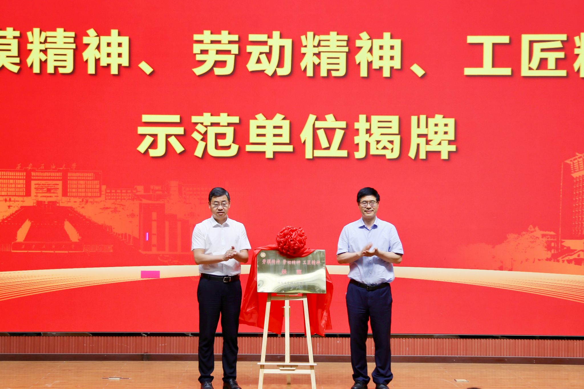 儀式上,張向陽(yáng)宣讀了《關(guān)于授予“西安石油大學(xué)鐵人王進(jìn)喜紀(jì)念館”“勞模精神、勞動(dòng)精神、工匠精神”示范單位的通報(bào)》。