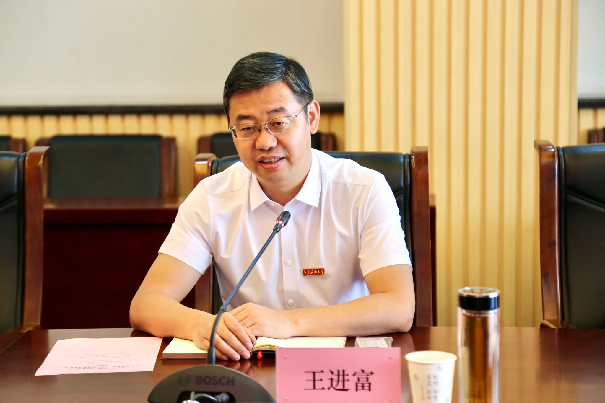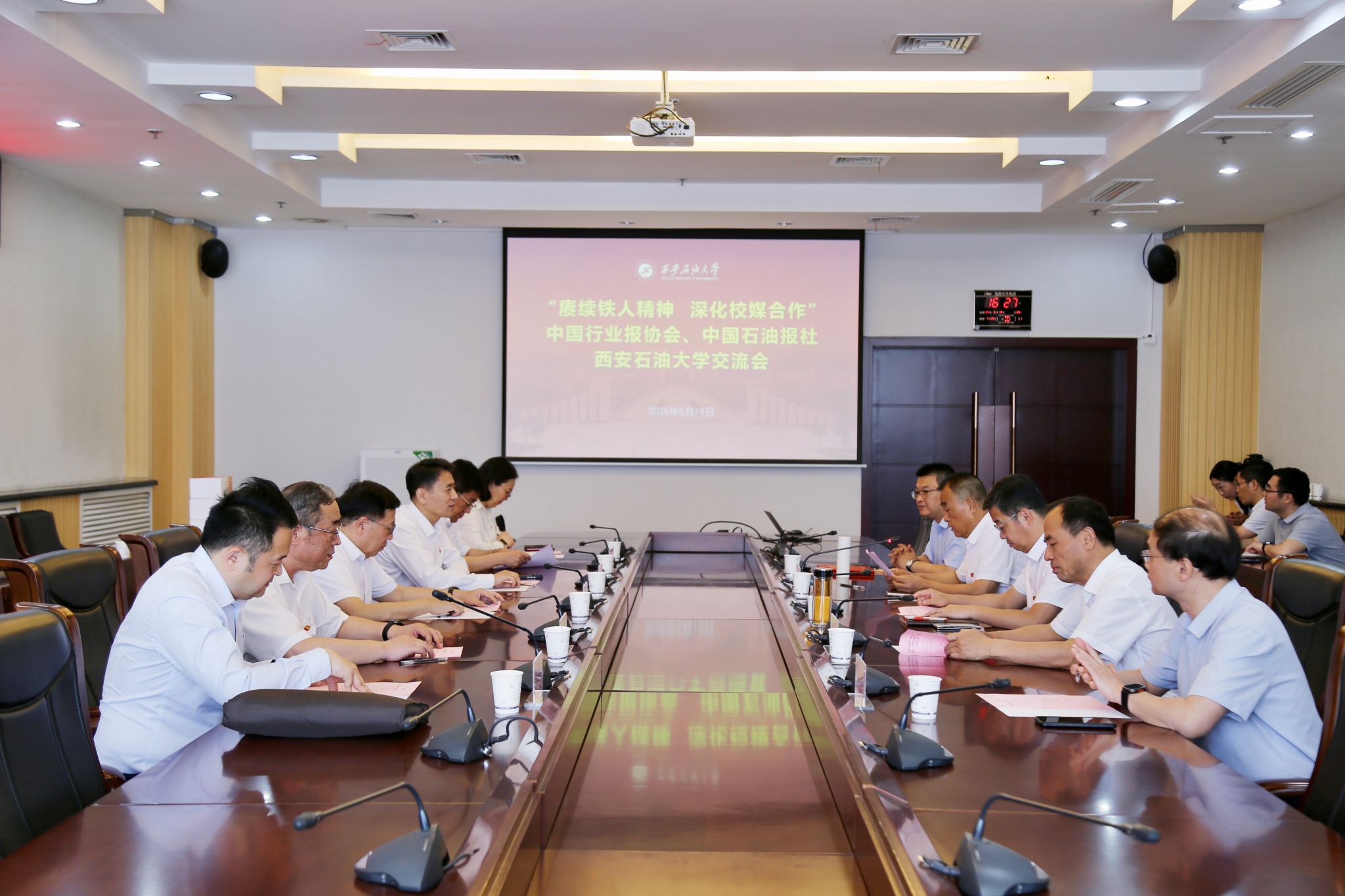 5月19日下午,中國行業(yè)報(bào)協(xié)會(huì)會(huì)長張超文、《中國石油報(bào)》社有限公司總經(jīng)理耿玉鋒與我校領(lǐng)導(dǎo)在鄠邑校區(qū)圖書館第二會(huì)議室舉行座談,我校校長王進(jìn)富出席會(huì)議,校黨委副書記程永清主持座談會(huì)。