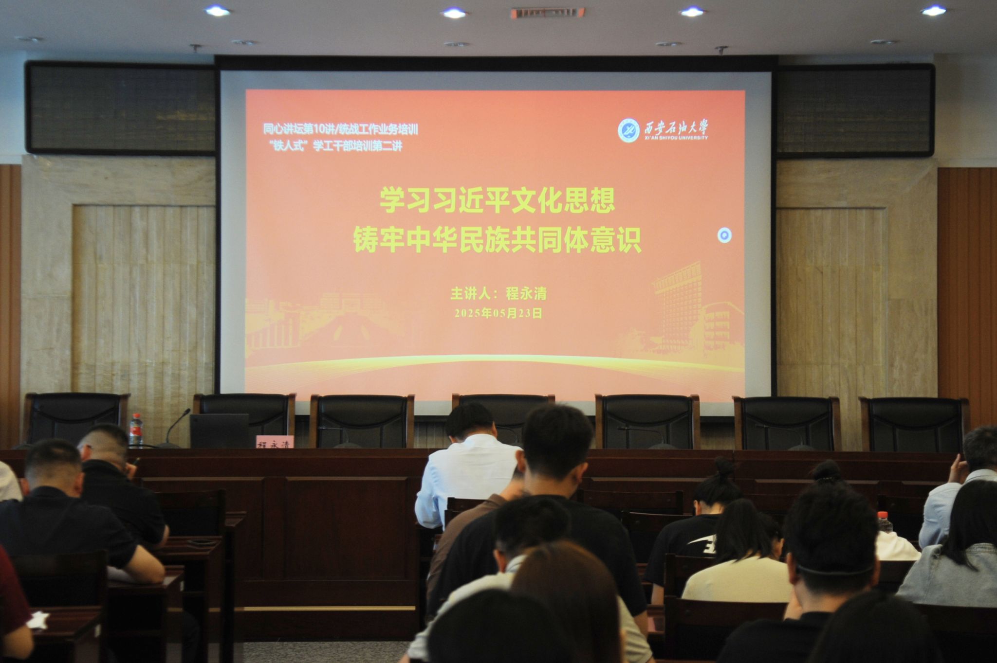 5月23日下午,校黨委副書(shū)記程永清在鄠邑校區(qū)圖書(shū)館第一會(huì)議室為全校學(xué)工干部作了題為“學(xué)習(xí)習(xí)近平文化思想 鑄牢中華民族共同體意識(shí)”專題報(bào)告。黨委統(tǒng)戰(zhàn)部、黨委學(xué)生工作部、研究生工作部等部門全體同志,各院(系)學(xué)生工作負(fù)責(zé)人及全體輔導(dǎo)員參加。