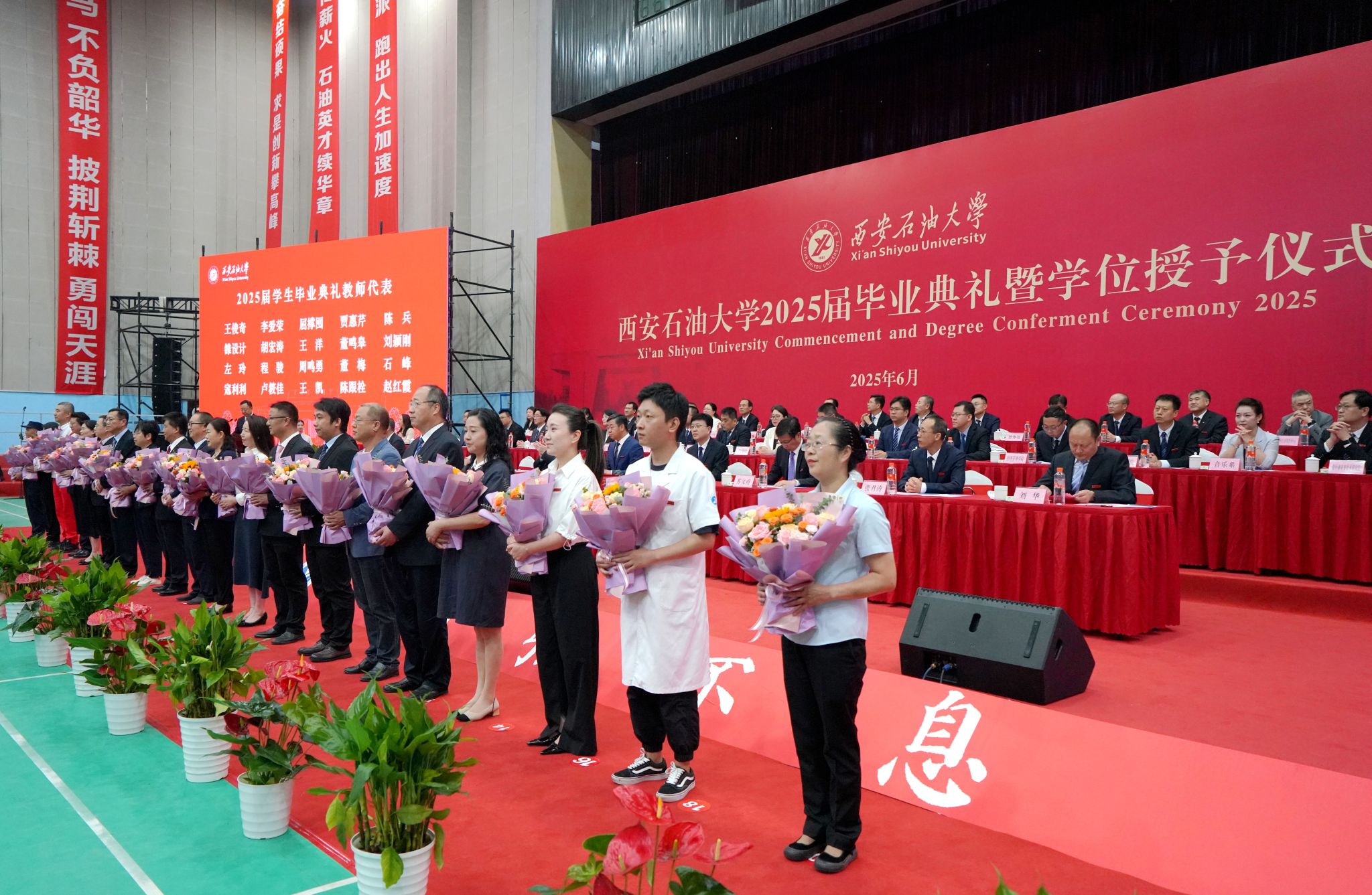 6月19日上午,西安石油大學(xué)2025屆畢業(yè)典禮暨學(xué)位授予儀式在雁塔校區(qū)體育館舉行。校黨政領(lǐng)導(dǎo)常江、王進(jìn)富、張木、王輝強(qiáng)、程永清、蘇文甫、張榮軍、趙健出席典禮儀式。相關(guān)職能部門、各院(系)負(fù)責(zé)人,教師代表,校友代表,2025屆畢業(yè)生及家長3000余人來到現(xiàn)場(chǎng),共同見證這一重要時(shí)刻。學(xué)位授予儀式由校黨委委員、副校長張君濤主持,畢業(yè)典禮由校黨委委員、副校長種宇宏主持。