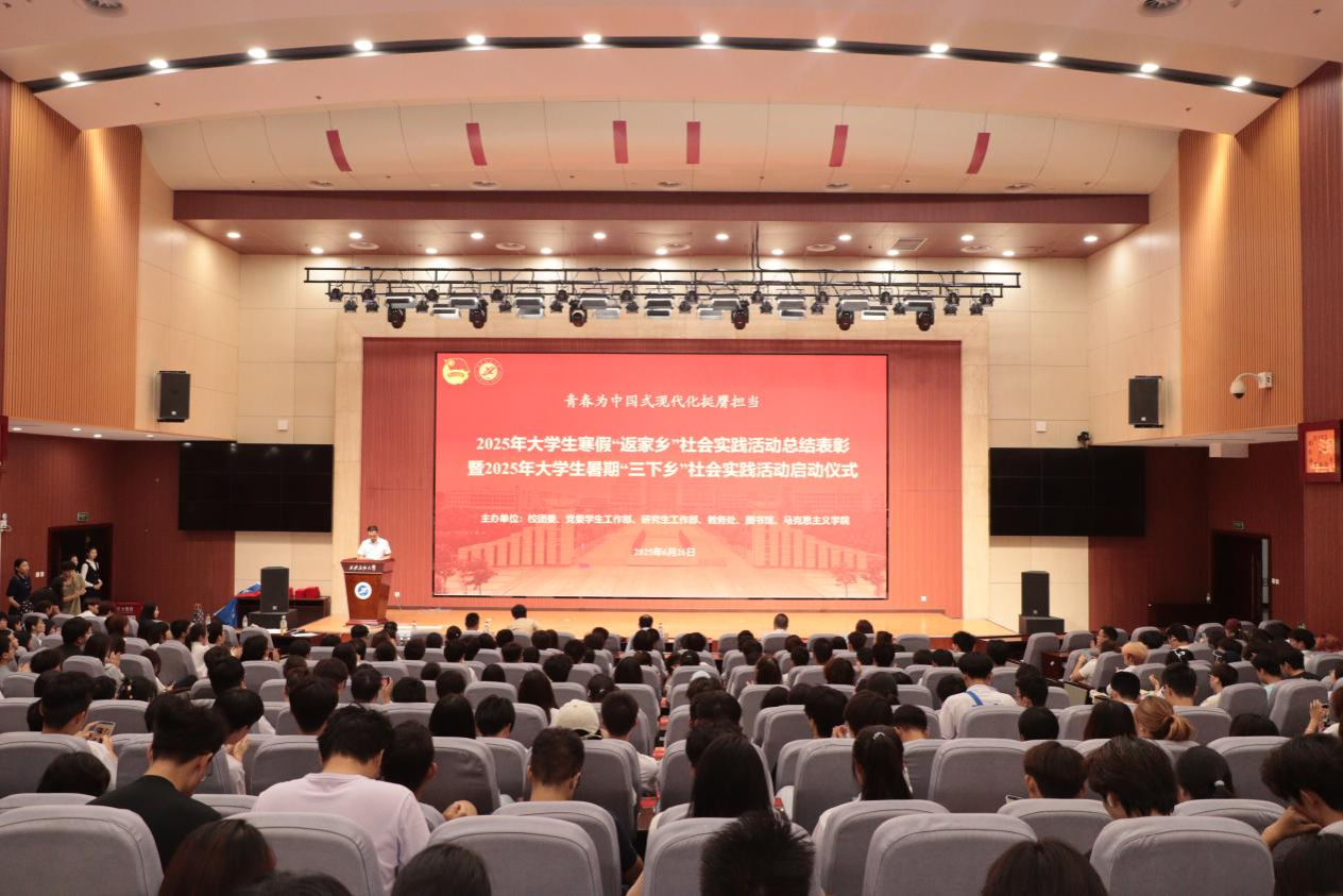 6月26日下午,我校2025年大學(xué)生寒假“返家鄉(xiāng)”社會(huì)實(shí)踐活動(dòng)總結(jié)表彰暨2025年大學(xué)生暑期“三下鄉(xiāng)”社會(huì)實(shí)踐活動(dòng)啟動(dòng)儀式在鄠邑校區(qū)弘石學(xué)術(shù)報(bào)告廳舉行。副校長種宇宏出席會(huì)議并講話,黨委學(xué)生工作部、校團(tuán)委、教務(wù)處、圖書館、馬克思主義學(xué)院等單位負(fù)責(zé)人,各院(系)團(tuán)委書記,2025年大學(xué)生寒假“返家鄉(xiāng)”社會(huì)實(shí)踐受表彰師生代表,2025年大學(xué)生暑期“三下鄉(xiāng)”社會(huì)實(shí)踐師生代表共500余人參加會(huì)議。