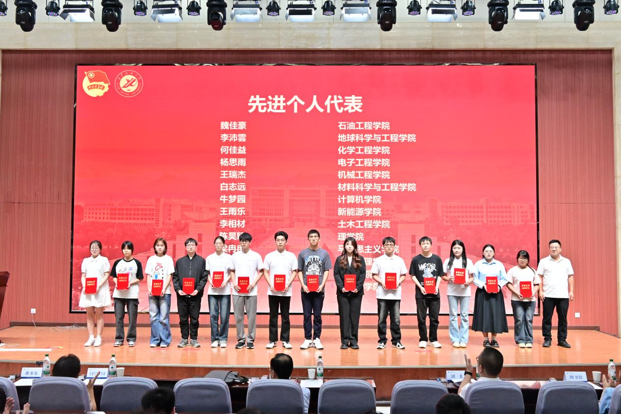 會(huì)上,種宇宏為2025年大學(xué)生暑期“三下鄉(xiāng)”社會(huì)實(shí)踐團(tuán)隊(duì)代表授旗,與會(huì)部門負(fù)責(zé)人分別為2025年大學(xué)生寒假社會(huì)實(shí)踐先進(jìn)個(gè)人代表、優(yōu)秀團(tuán)隊(duì)、標(biāo)兵團(tuán)隊(duì)、優(yōu)秀指導(dǎo)老師、優(yōu)秀組織單位頒獎(jiǎng)。校團(tuán)委負(fù)責(zé)人宣讀了《關(guān)于2025年大學(xué)生寒假“返家鄉(xiāng)”社會(huì)實(shí)踐活動(dòng)總結(jié)表彰的通知》《關(guān)于開展西安石油大學(xué)2025年大學(xué)生暑期“三下鄉(xiāng)”社會(huì)實(shí)踐的通知》,經(jīng)濟(jì)管理學(xué)院經(jīng)管2301張鳳晗同學(xué)代表2025年大學(xué)生寒假社會(huì)實(shí)踐獲獎(jiǎng)團(tuán)隊(duì)作了交流分享。