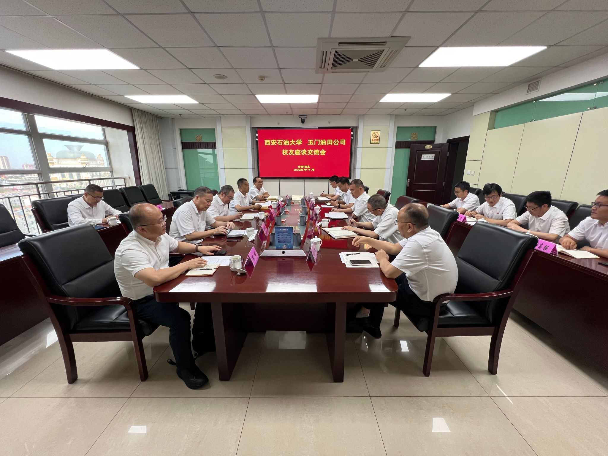 隨后,常江一行與學(xué)校在玉門油田公司工作的校友代表舉行座談。常江向校友匯報(bào)了學(xué)校第三次黨代會(huì)以來的發(fā)展情況,介紹了學(xué)校積極構(gòu)建學(xué)校與校友終身命運(yùn)共同體的具體舉措以及最終要達(dá)成的“情感共鳴、信息共通、資源共享、發(fā)展共贏、價(jià)值共同”成效。程永清表示,玉門油田是有著悠久歷史傳承和涵養(yǎng)偉大精神的地方,校友們要立足崗位多做貢獻(xiàn),實(shí)現(xiàn)更好發(fā)展,母校愿力所能及做好服務(wù)保障工作,希望校友繼續(xù)關(guān)注學(xué)校發(fā)展、?;啬感?纯?。校友們分別匯報(bào)了各自發(fā)展情況和對(duì)學(xué)校的建議,回憶了在校期間的學(xué)習(xí)生活情況,均表示期待學(xué)校實(shí)現(xiàn)更好更快發(fā)展,愿與母校一同進(jìn)步,為石油事業(yè)貢獻(xiàn)力量。