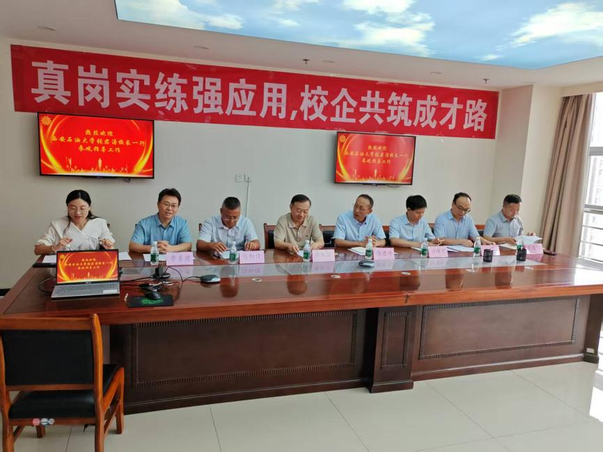 授牌儀式上,張君濤代表學(xué)校向長(zhǎng)之河公司在共建校外實(shí)習(xí)實(shí)踐教學(xué)基地過(guò)程中給予的支持,以及長(zhǎng)期以來(lái)對(duì)學(xué)校發(fā)展的大力幫助表示誠(chéng)摯感謝。他簡(jiǎn)要回顧了學(xué)校70余年的辦學(xué)歷史與發(fā)展脈絡(luò),詳細(xì)介紹了學(xué)校第三次黨代會(huì)擘畫(huà)的發(fā)展藍(lán)圖、“三個(gè)小目標(biāo)” 取得的階段性成果,以及形成的 “三小三大三氛圍” 良好發(fā)展態(tài)勢(shì)。張君濤指出,學(xué)校因 “油” 而生、為 “油” 而興,長(zhǎng)期以來(lái)聚焦服務(wù)國(guó)家能源重大戰(zhàn)略領(lǐng)域,學(xué)校以石油石化為鮮明特色,堅(jiān)守 “立足陜西、面向西北、服務(wù)全國(guó)” 的辦學(xué)定位,培養(yǎng)了大批具備 “四實(shí)一新” 特質(zhì)的高素質(zhì)專(zhuān)業(yè)技術(shù)人才。學(xué)校辦學(xué)特色與長(zhǎng)之河公司的發(fā)展方向、產(chǎn)業(yè)布局高度契合。他表示,希望以此次走訪為契機(jī),深化校企傳統(tǒng)情誼,推動(dòng)合作向縱深發(fā)展,在學(xué)生就業(yè)、“卓工” 人才與專(zhuān)業(yè)學(xué)位研究生貫通培養(yǎng)、實(shí)踐教學(xué)基地共建等領(lǐng)域發(fā)揮雙方優(yōu)勢(shì)、彰顯特色,探索校企合作與產(chǎn)教融合的新范式、新路徑,助力教育、科技、人才協(xié)同高質(zhì)量發(fā)展,為保障國(guó)家能源安全戰(zhàn)略貢獻(xiàn)合力。