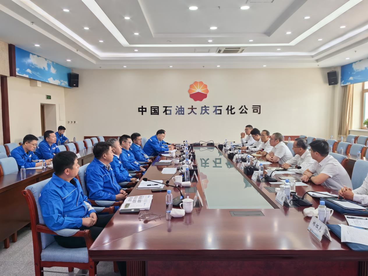 在中國石油大慶石化分公司,常江一行與公司執(zhí)行董事、黨委書記于強,副總經(jīng)理、安全總監(jiān)崔俊峰,副總經(jīng)濟師盛開等交流座談,介紹了上次到訪后學校在石油化工領域的科研進展,圍繞建立科研合作與人才交流長效機制、有效發(fā)揮學校智力支撐和企業(yè)場景優(yōu)勢等深入溝通交流。