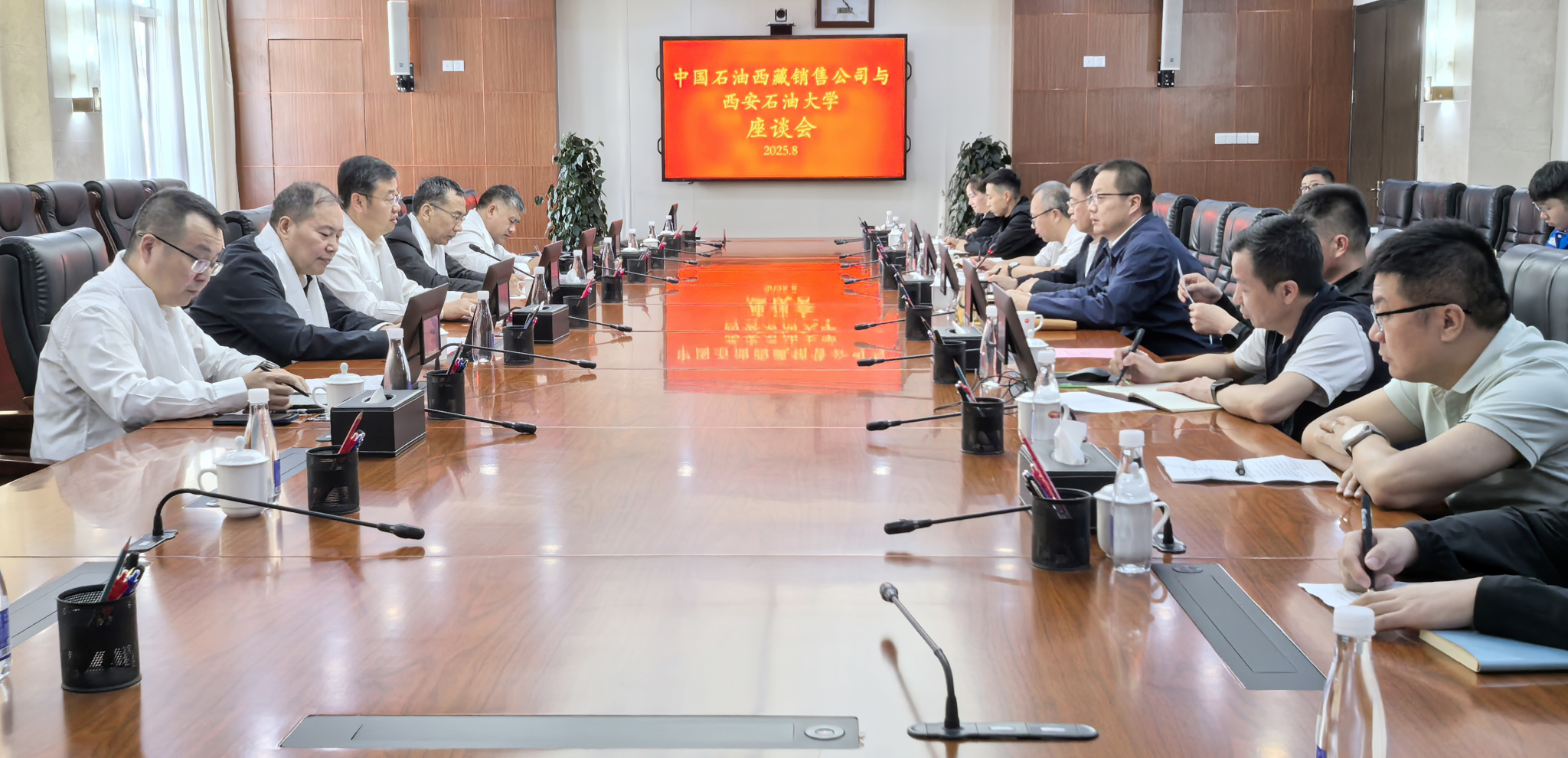 8月23日,王進(jìn)富一行與中國石油西藏銷售公司(簡稱“西藏銷售”)總經(jīng)理徐啟東(財務(wù)管理1999屆校友)、副總經(jīng)理趙漢寶,青藏管道公司黨委書記李國鋒等有關(guān)負(fù)責(zé)同志座談交流。王進(jìn)富對西藏銷售長期以來給予校友提供的成長和平臺表示衷心感謝。他梳理和回顧了學(xué)校歷史發(fā)展脈絡(luò),介紹了學(xué)校第三次黨代會召開以來取得的成效、形成的“三小三大三氛圍”。他指出,學(xué)校近年來堅持開放辦學(xué),緊扣能源行業(yè)發(fā)展需求,深化產(chǎn)教融合,凝聚學(xué)校優(yōu)勢,聚焦企業(yè)需求,大力開展與行業(yè)企業(yè)的深層次合作。徐啟東對母校來訪表示歡迎和感動,對母校近年來給予公司優(yōu)秀人才的輸送表示衷心感謝,對母校近年來取得的成績表示驕傲自豪,并介紹了公司的基本情況及在高原地區(qū)的能源保供體系、清潔能源替代與數(shù)字化轉(zhuǎn)型等方面的實(shí)踐與成效。雙方均表示在人才培養(yǎng)、科學(xué)研究、營銷體系構(gòu)建、學(xué)生實(shí)習(xí)就業(yè)、員工繼續(xù)教育等方面加深合作。