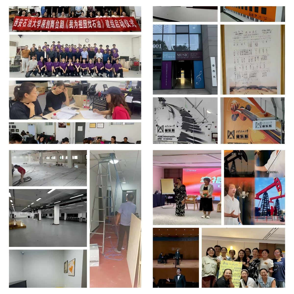 一是學(xué)科建設(shè)結(jié)碩果。原創(chuàng)音樂(lè)劇《我為祖國(guó)找石油——新中國(guó)第一支女子測(cè)量隊(duì)》獲批陜西省藝術(shù)創(chuàng)作重大資助項(xiàng)目,暑期團(tuán)隊(duì)封閉打磨劇目,確保高質(zhì)量完成首演。二是教學(xué)服務(wù)再升級(jí)。完成鄠邑校區(qū)琴房“一卡通”預(yù)約系統(tǒng)建設(shè)、琴房聲學(xué)構(gòu)建及舞蹈/瑜伽教室維修升級(jí),持續(xù)提升教學(xué)服務(wù)水平。三是環(huán)境育人潤(rùn)無(wú)聲。設(shè)計(jì)鄠邑校區(qū)辦公及公共空間文化宣傳展示,通過(guò)墻體和展板呈現(xiàn)發(fā)展歷程、辦學(xué)特色等,營(yíng)造濃郁藝術(shù)氛圍,增強(qiáng)師生歸屬感。四是科研實(shí)踐交流齊推進(jìn)。積極推進(jìn)與陜西戲曲研究院深度合作;校合唱團(tuán)成功入選國(guó)家大劇院演出季,對(duì)接《云橫秦嶺》北京演出事宜;教師榮獲“云崗杯”國(guó)際民族器樂(lè)展演金獎(jiǎng);精心錄制的《石油人的歌》MV,以藝術(shù)之聲禮贊石油精神;10余人次參加研修班,提升教師隊(duì)伍素養(yǎng)。