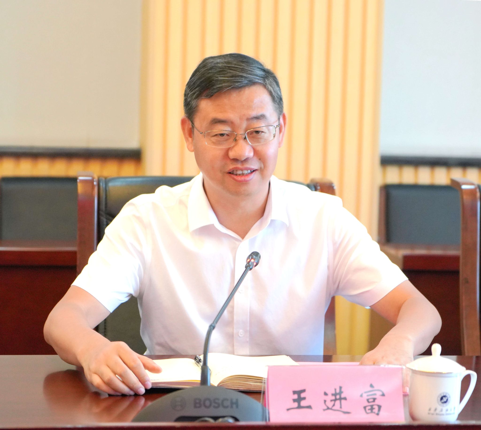 9月1日上午,中國(guó)石化陜西石油分公司總經(jīng)理、黨委副書記戴盡良一行來校交流訪問,校長(zhǎng)王進(jìn)富出席座談會(huì)并講話。座談會(huì)由校黨委副書記張木主持。