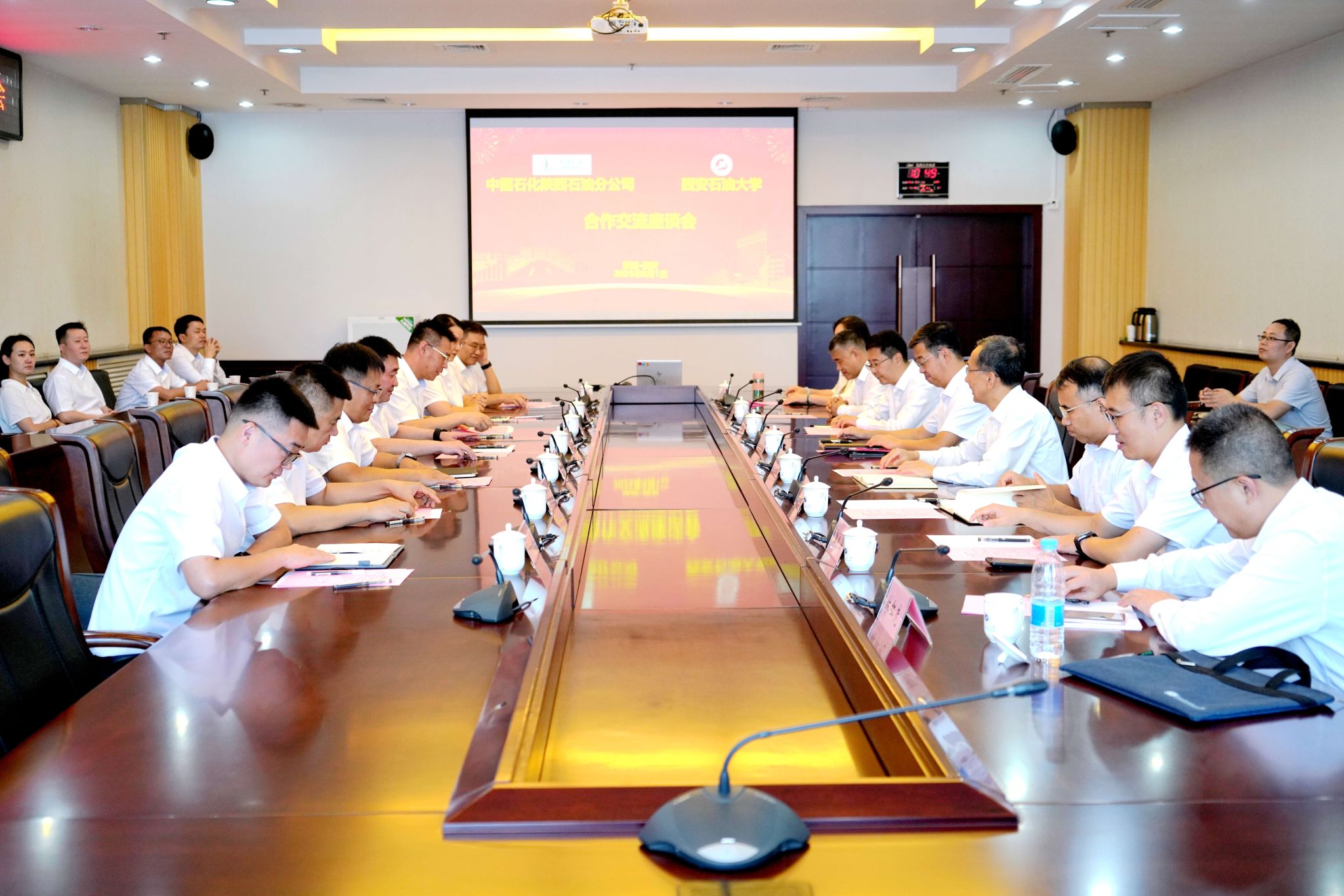 會(huì)議期間,與會(huì)人員共同觀看了學(xué)校宣傳片,雙方還共同圍繞黨建共建、人才培養(yǎng)、學(xué)生實(shí)習(xí)就業(yè)、員工繼續(xù)教育培訓(xùn)、教職工油品優(yōu)惠、校園生活服務(wù)保障等多項(xiàng)內(nèi)容進(jìn)行了深入交流探討。