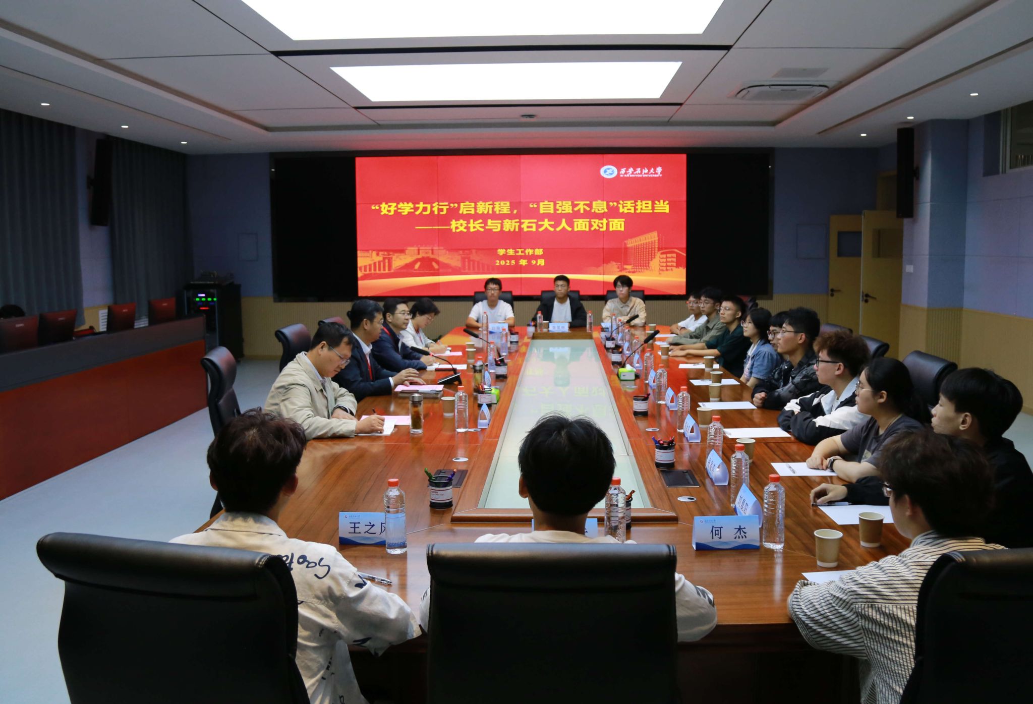 校長還分別與本科拔尖創(chuàng)新人才新生代表、研究生新生代表進(jìn)行了座談交流。座談會上,校長聽取了同學(xué)們對大學(xué)生活的憧憬與規(guī)劃,介紹了學(xué)校在人才培養(yǎng)、科學(xué)研究等方面的優(yōu)勢與特色,并勉勵他們珍惜時光、志存高遠(yuǎn)、腳踏實(shí)地,充分利用學(xué)校提供的優(yōu)質(zhì)平臺,努力成長為堪當(dāng)民族復(fù)興大任的時代新人和能源領(lǐng)域的卓越人才。