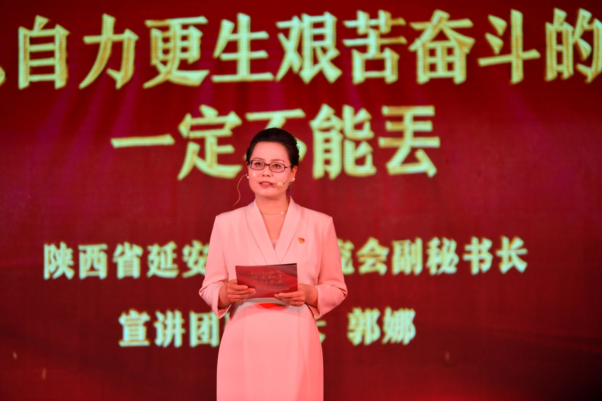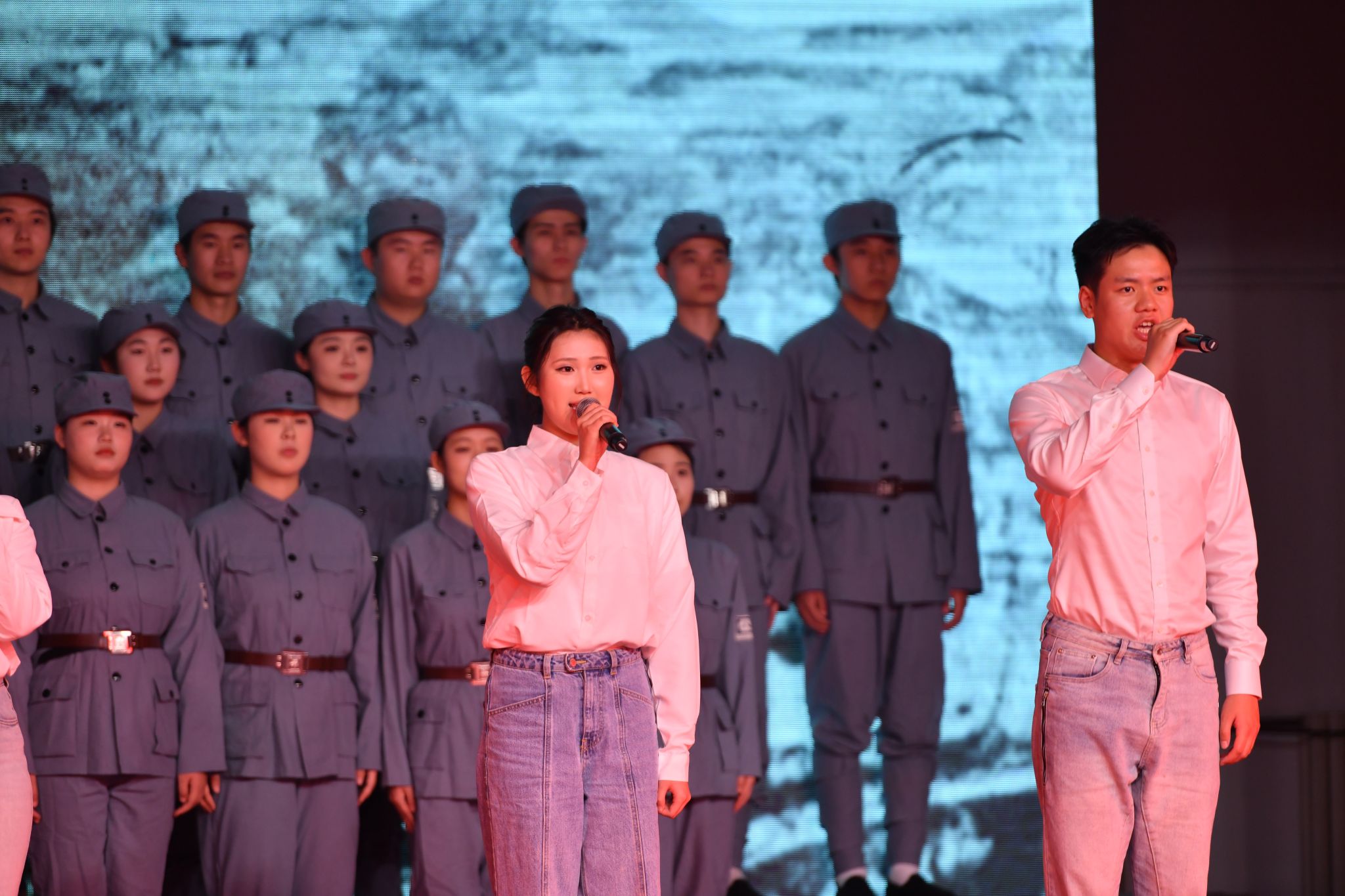 活動分為序幕、信念之路、思想之炬、為民之心、奮進之力四大篇章、尾聲,包括《延安頌》《延安窯洞有馬列主義》《全心全意為人民服務(wù)的楷?!贰额I(lǐng)航》等8個節(jié)目,并由4位知名專家分別圍繞“為什么中國的希望在延安”“為什么延安窯洞有馬列主義”“為什么要將為人民服務(wù)作為黨的根本宗旨寫入《中國共產(chǎn)黨章程》”“為什么習(xí)近平總書記囑托無論將來物質(zhì)生活多么豐富,自力更生艱苦奮斗的精神一定不能丟”等核心問題,進行深入淺出的理論闡釋,實現(xiàn)了文藝表達與思想教育的深度融合,活動現(xiàn)場莊重?zé)崃?,洋溢著濃厚的紅色氛圍。其中,我校音樂系教師李強、田立分別演繹了《領(lǐng)航》、《山丹丹開花紅艷艷》歌曲,我校合唱團以激昂的歌聲合唱了《延安頌》《領(lǐng)航》等曲目,傳遞出新時代青年繼承革命傳統(tǒng)、勇?lián)姑膱远ㄐ拍睢?/p>