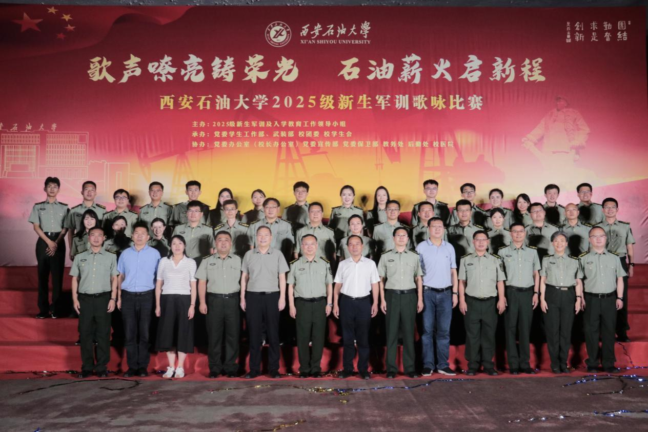 9月15日晚,我校“歌聲嘹亮鑄榮光,石油薪火啟新程”2025級(jí)新生軍訓(xùn)歌詠比賽在鄠邑校區(qū)西田徑場舉行,學(xué)校軍訓(xùn)工作領(lǐng)導(dǎo)小組組長、副校長種宇宏,中國人民解放軍某部隊(duì)武少杰中校出席活動(dòng)。學(xué)校黨委辦公室(校長辦公室)、黨委宣傳部、黨委學(xué)生工作部、黨委保衛(wèi)部、團(tuán)委、教務(wù)處、后勤處、校醫(yī)院等軍訓(xùn)工作領(lǐng)導(dǎo)小組成員單位負(fù)責(zé)人擔(dān)任評(píng)委,各院(系)主管學(xué)生工作負(fù)責(zé)人,全體參訓(xùn)教官、學(xué)工干部和2025級(jí)新生觀看了比賽。