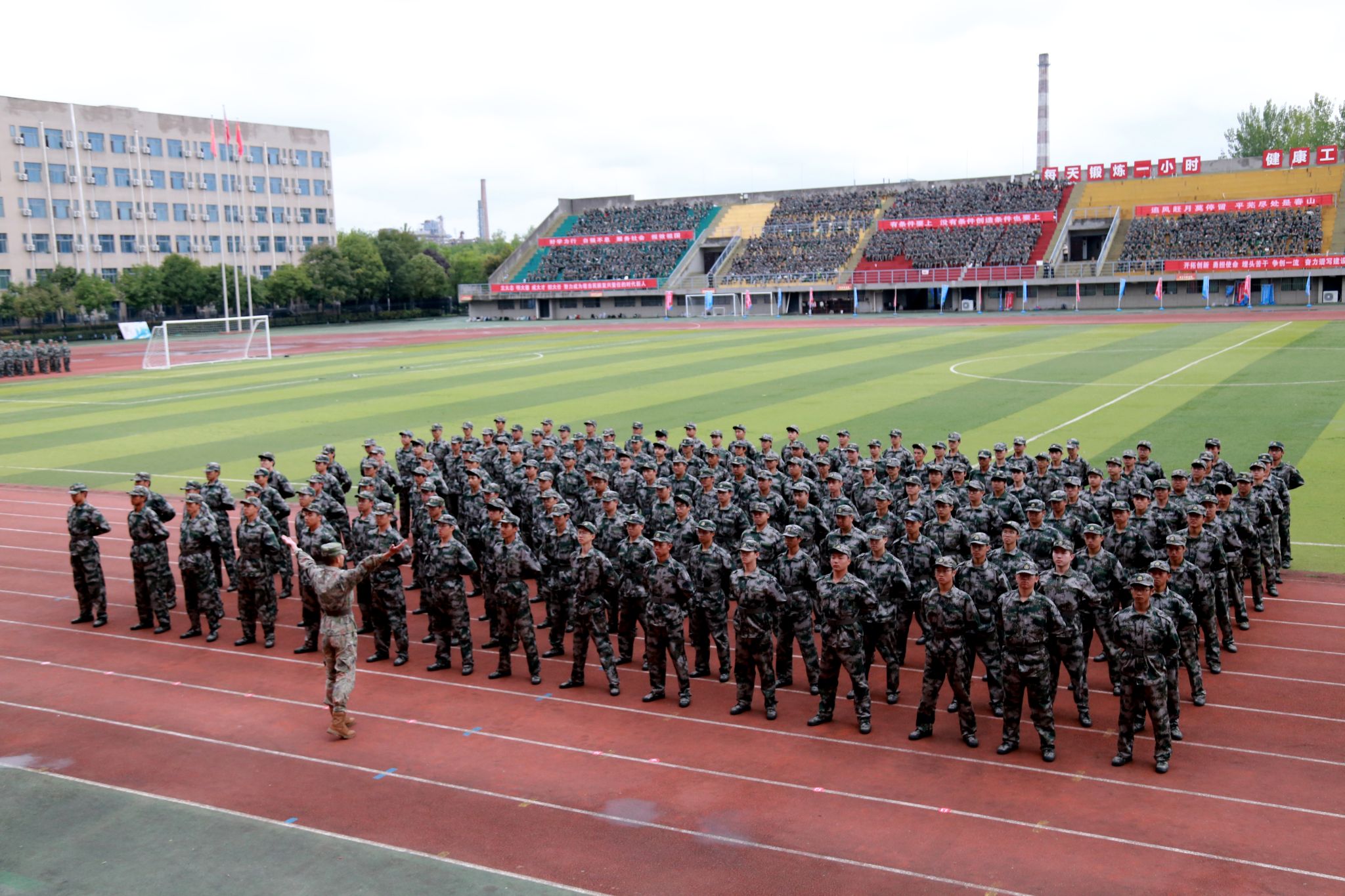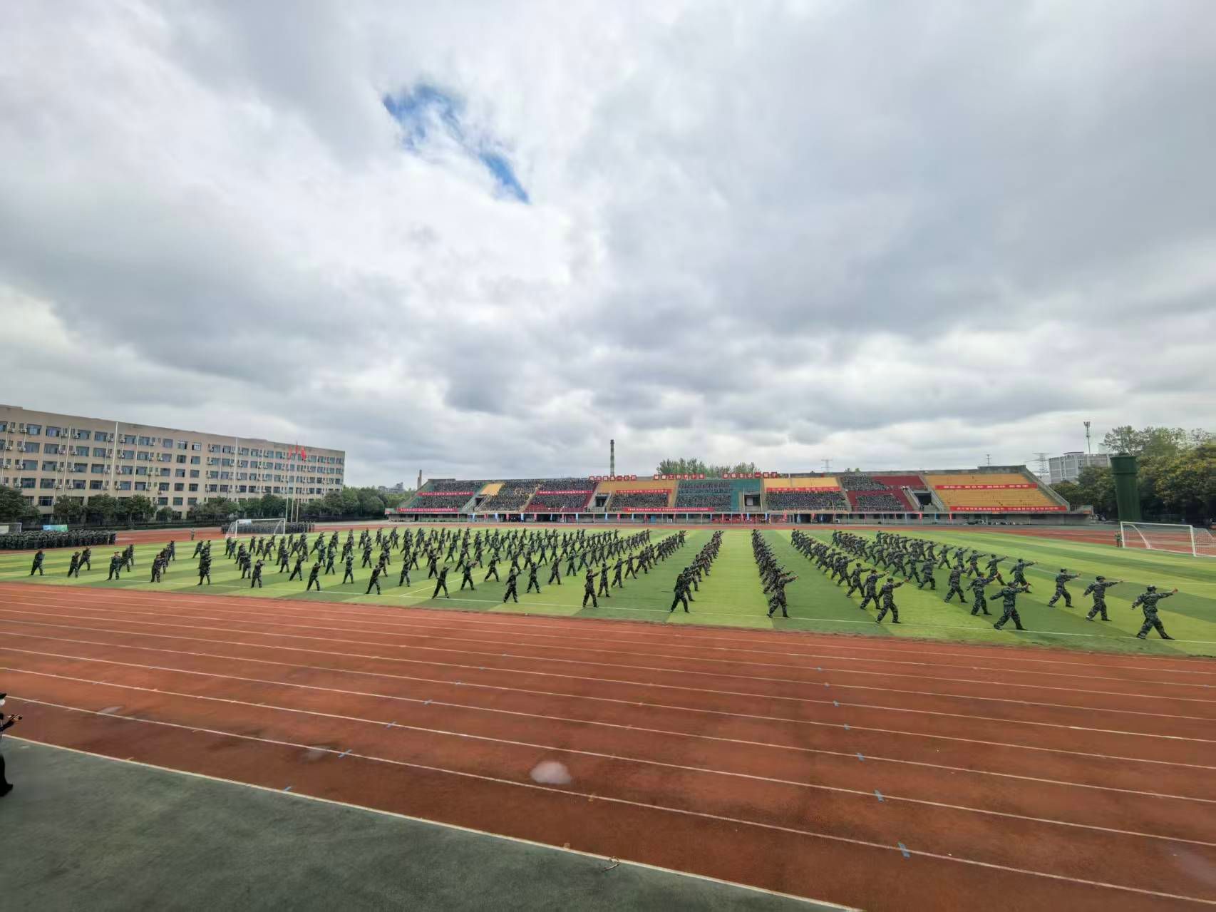 秋雨洗禮志更堅,晴空萬里展英姿。9月19日上午,我校2025級本科生軍訓(xùn)總結(jié)表彰大會在鄠邑校區(qū)東體育場隆重舉行。校長王進(jìn)富,副校長趙健,副校長、軍訓(xùn)領(lǐng)導(dǎo)小組組長種宇宏,中國人民解放軍某部隊中校武少杰出席大會。軍訓(xùn)領(lǐng)導(dǎo)小組成員單位負(fù)責(zé)人,各院(系)主要負(fù)責(zé)人、學(xué)生工作負(fù)責(zé)人,全體教官、參訓(xùn)干部以及2025級全體本科生共4700余人參加大會。大會由軍訓(xùn)旅政委、武裝部部長王亮主持。