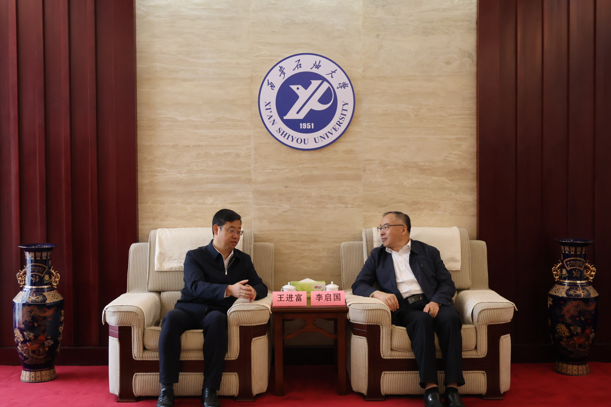 9月25日上午,“山東—名校人才直通車”暨東營市“產融百校”對接交流系列活動在我校鄠邑校區(qū)舉辦。山東省公共就業(yè)和人才服務中心副廳級干部李啟國、東營市人力資源和社會保障局黨組成員、市公共就業(yè)和人才服務中心主任李長林等省市領導參加活動。校長王進富在圖書館接待室會見李啟國一行,向山東省、東營市人社部門對學校發(fā)展給予的支持表示感謝,并預?;顒訄A滿舉行。校黨委委員、副校長張君濤出席相關活動。我校學生工作部(處)(就業(yè)創(chuàng)業(yè)指導中心)、科研處、校友工作與合作交流處相關負責人陪同參加。