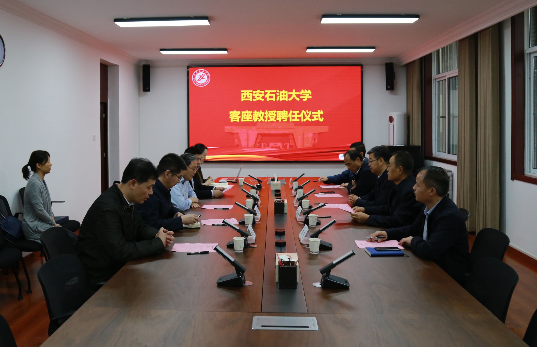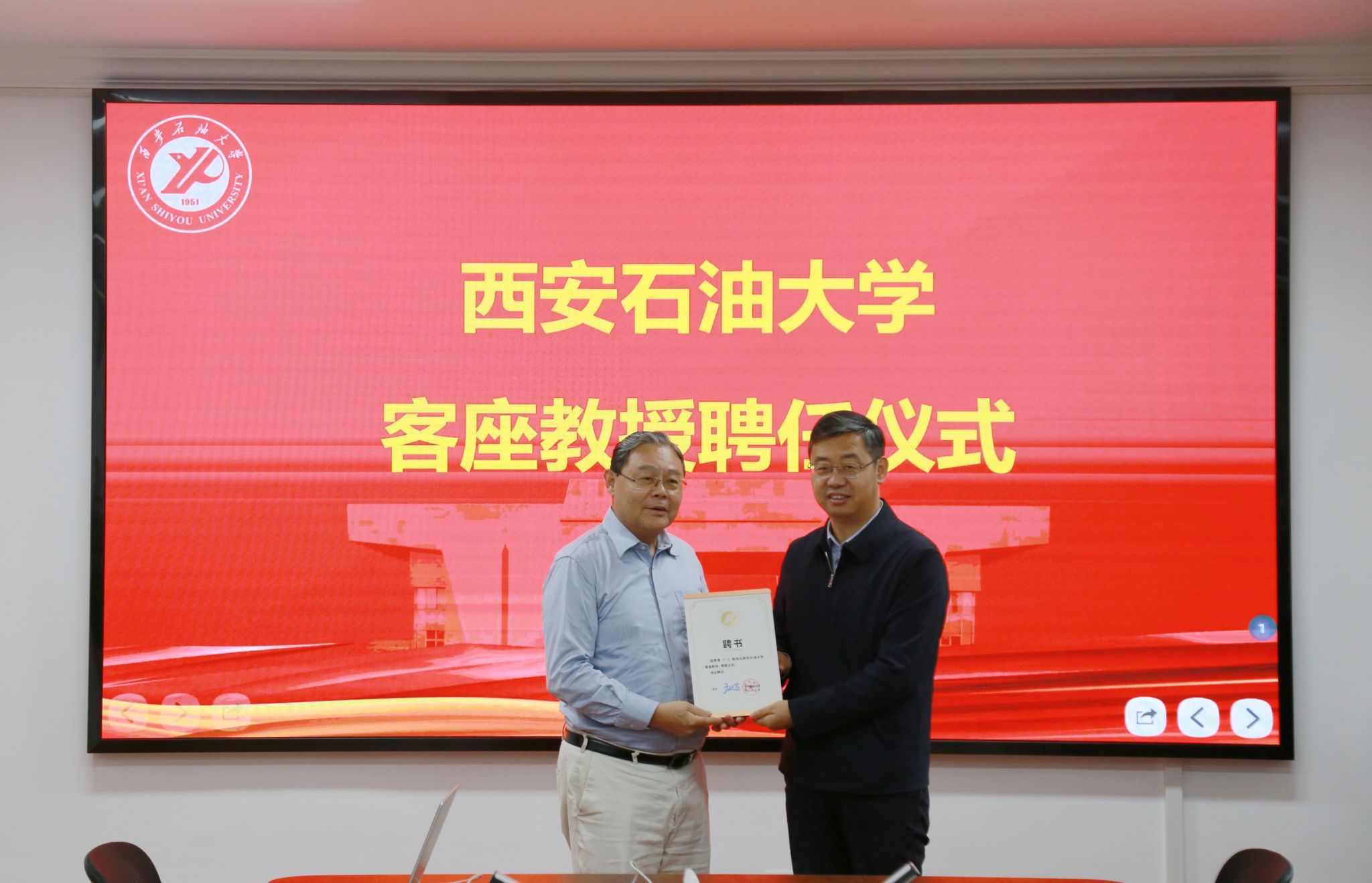 聘任儀式前,校長王進富在鄠邑校區(qū)貴賓室與鄒進教授進行了親切會談,對鄒教授的到來表示誠摯歡迎,并就學校紅色基因與石油精神傳承、校園文化建設、學科優(yōu)化布局、人才隊伍建設等方面進行交流,期待鄒進教授能夠充分發(fā)揮專業(yè)優(yōu)勢與學術國際影響力,提升學校學科發(fā)展水平。