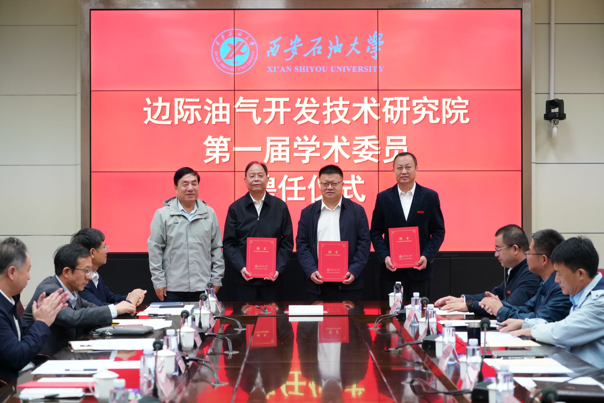 在隨后舉行的聘任儀式上,張木宣讀了《西安石油大學(xué)關(guān)于聘任第一屆邊際油氣開發(fā)技術(shù)研究院學(xué)術(shù)委員會委員的決定》,王進(jìn)富為李陽院士頒發(fā)了學(xué)術(shù)委員會主任委員聘書,李陽院士依次為各副主任委員、委員及秘書長頒發(fā)聘書?,F(xiàn)場掌聲雷動,氣氛熱烈。