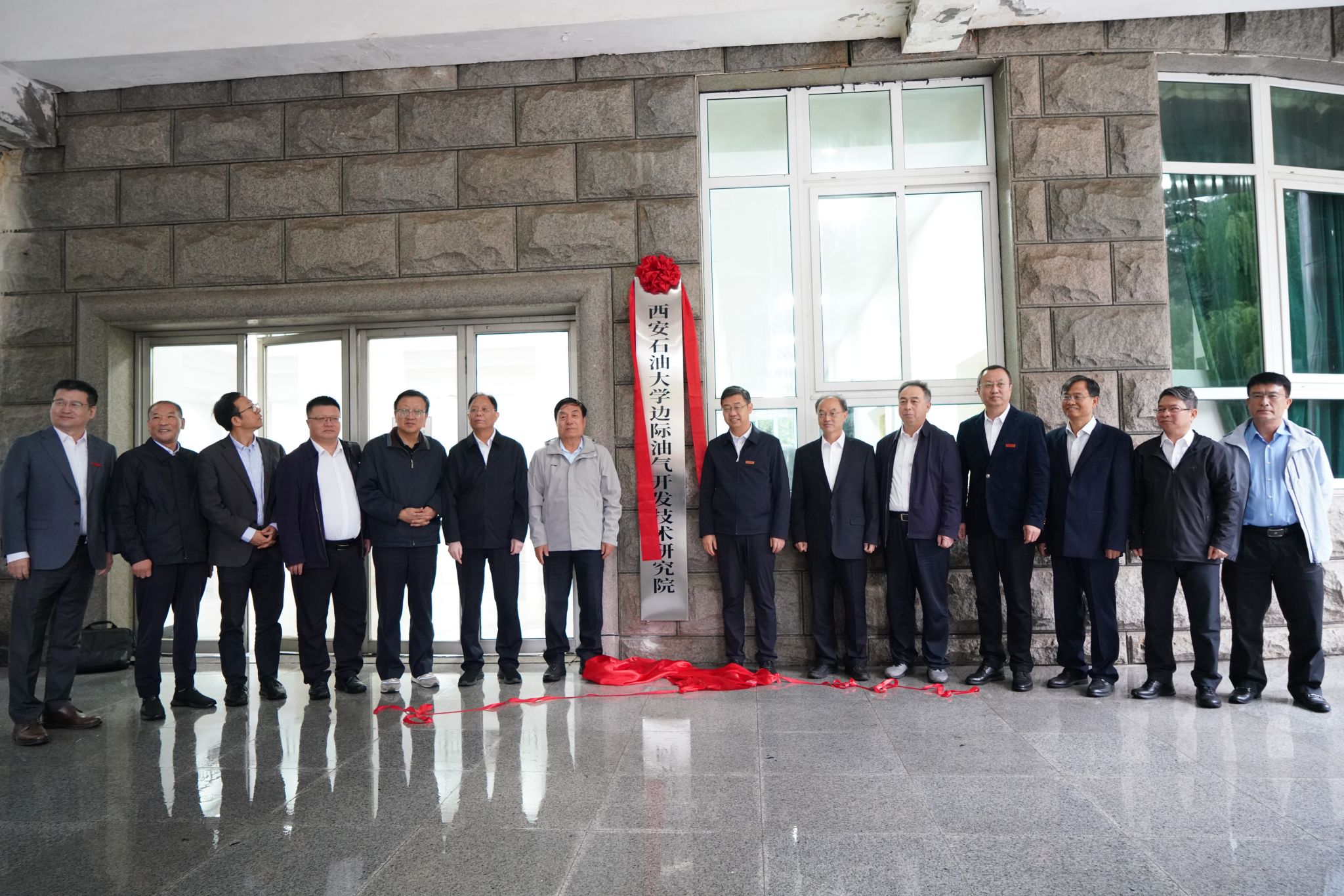 會后,在東階教學(xué)樓前舉行邊際油氣開發(fā)技術(shù)研究院揭牌儀式,全體與會人員合影留念。隨后,與會委員和嘉賓一同參觀了研究院實(shí)驗(yàn)室。