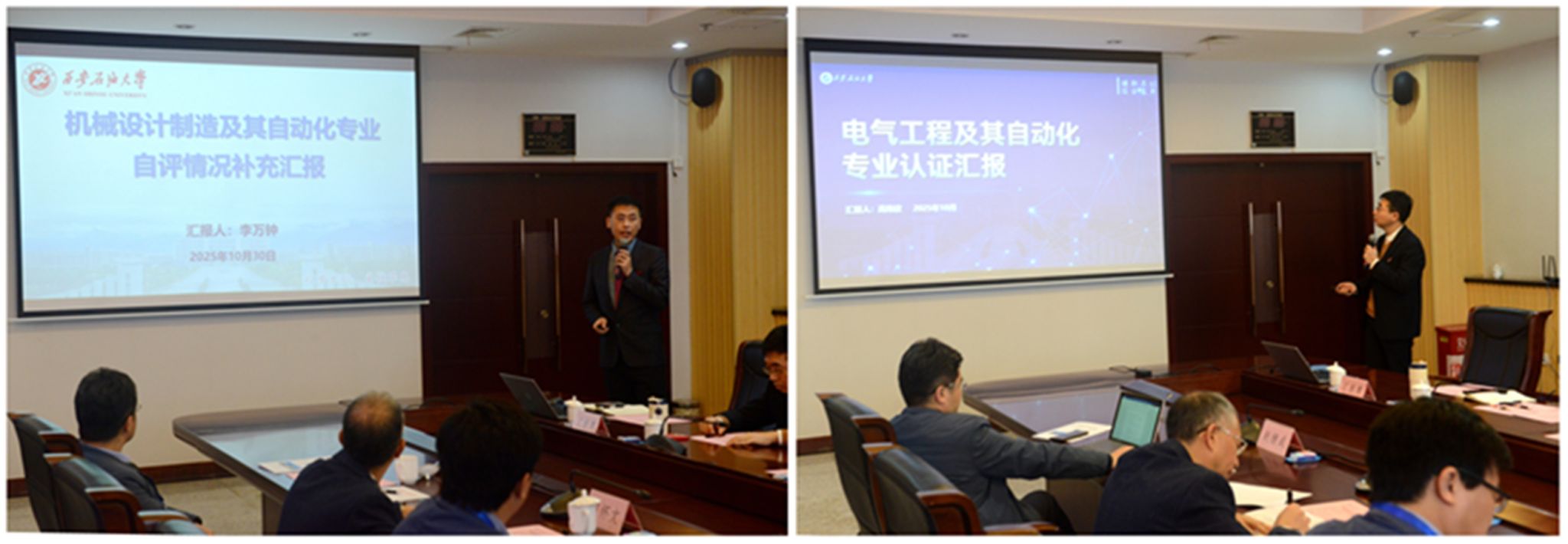 機(jī)械設(shè)計制造及其自動化、電氣工程及其自動化專業(yè)負(fù)責(zé)人分別對專業(yè)的自評情況作了補(bǔ)充匯報。