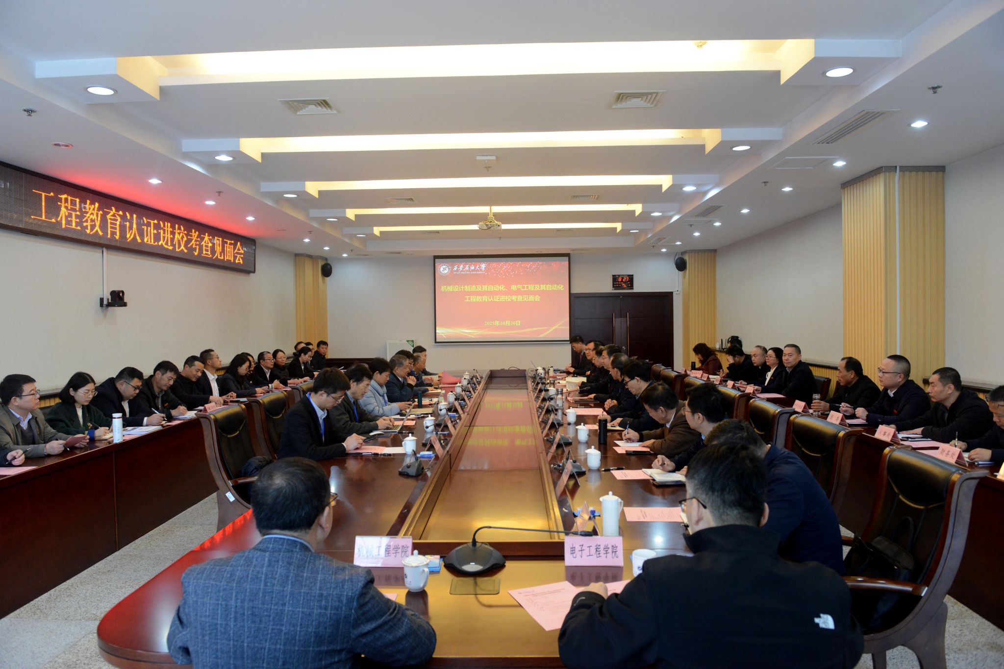 30日上午,考查專家組見面會在鄠邑校區(qū)第二會議室舉行??疾閷<医M聯(lián)合組長張星臣教授,專家組成員北京理工大學(xué)唐水源教授、湖南大學(xué)譚陽紅教授、西南交通大學(xué)田懷文教授、南京南瑞繼保電氣有限公司黃健教授、山東理工大學(xué)趙繼成教授、北京化工大學(xué)魏杰教授,校長王進(jìn)富,副校長張君濤、種宇宏出席會議。校本科督導(dǎo)專家組組長,相關(guān)職能部門和教輔單位負(fù)責(zé)人,機(jī)械工程學(xué)院、電子工程學(xué)院領(lǐng)導(dǎo)班子成員,機(jī)械設(shè)計制造及其自動化、電氣工程及其自動化專業(yè)負(fù)責(zé)人以及專業(yè)教師代表參加了見面會。