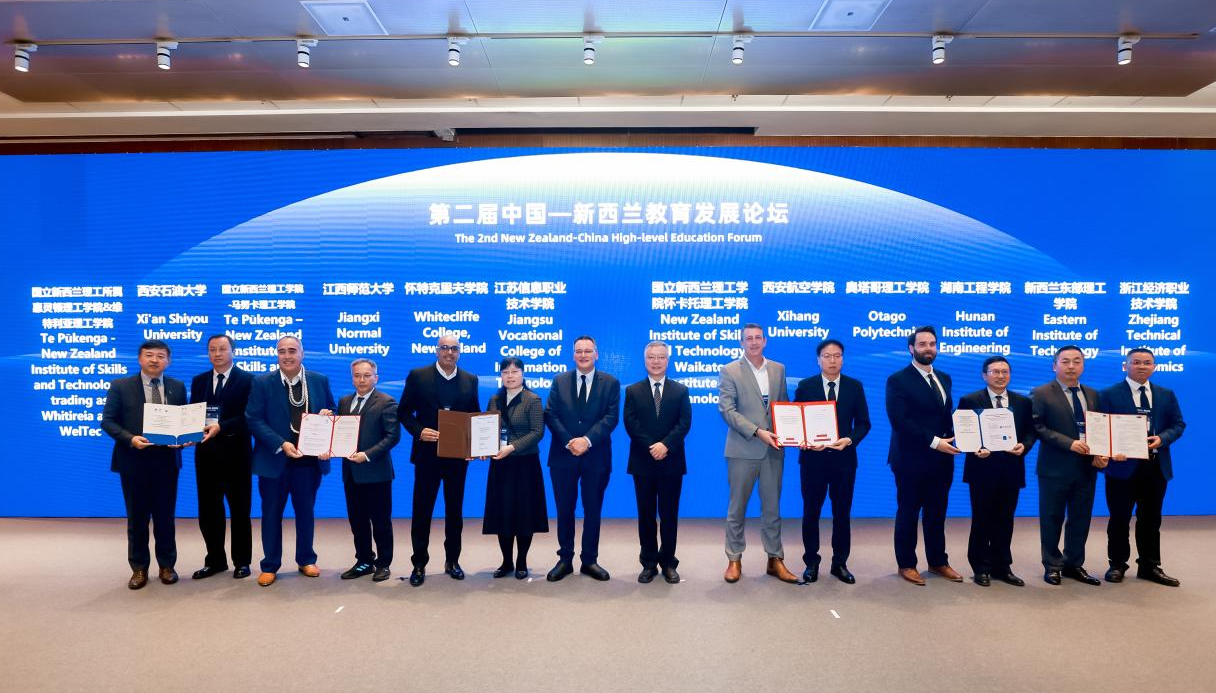 10月30日下午,我校副校長(zhǎng)張榮軍受邀參加第二屆中國(guó)—新西蘭教育發(fā)展論壇,并與新方院校代表在中國(guó)教育部副部長(zhǎng)任友群及新西蘭大學(xué)教育部長(zhǎng),科學(xué)、創(chuàng)新與技術(shù)部長(zhǎng)沙恩·雷蒂見證下,展示了我校與國(guó)立新西蘭理工所屬維特利亞理工學(xué)院和惠靈頓理工學(xué)院設(shè)立碩士層次中外合作辦學(xué)項(xiàng)目的合作意向書。