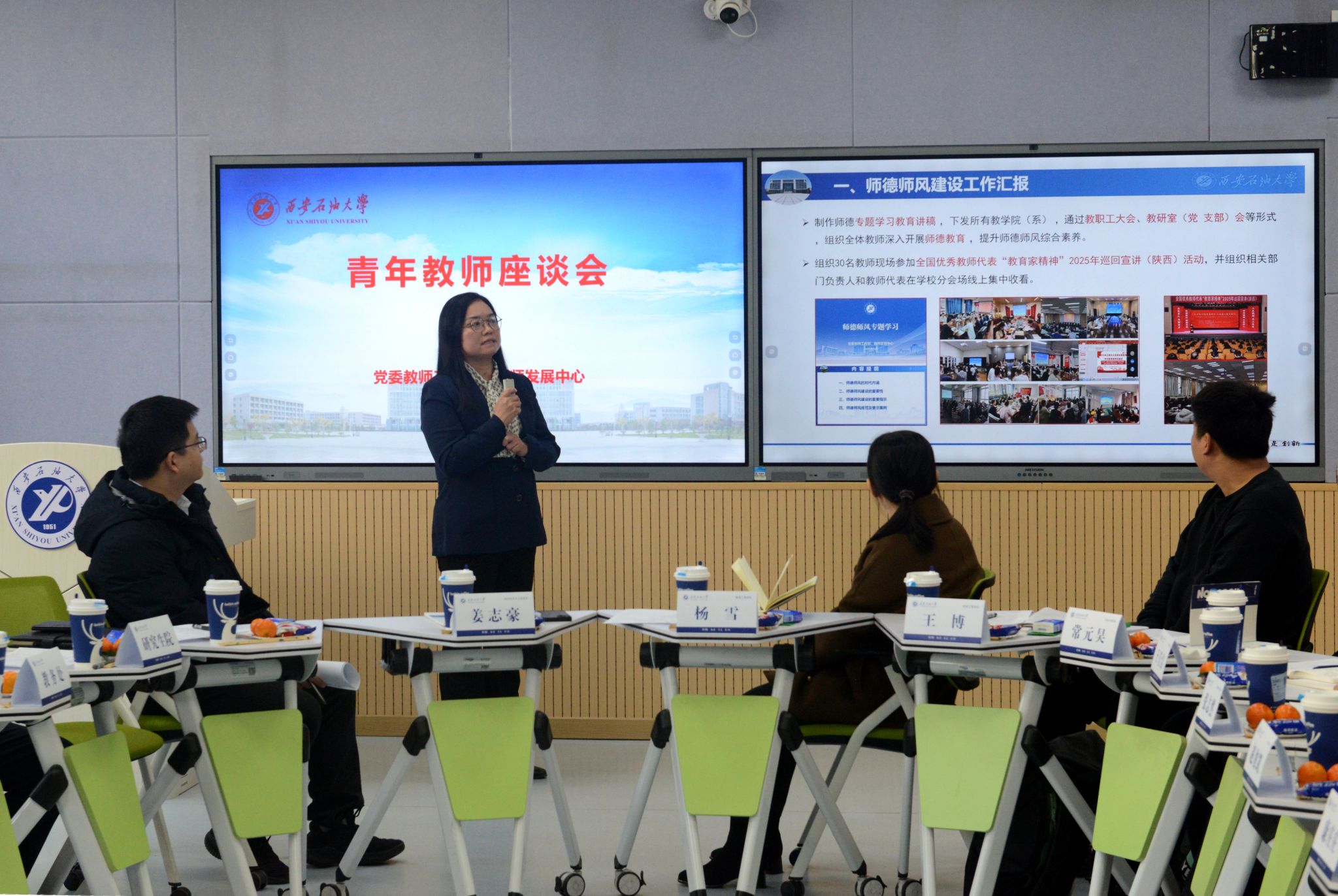 武曉朦以10月24日教育部等六部門聯(lián)合印發(fā)的《關(guān)于加強(qiáng)新時(shí)代高校青年教師隊(duì)伍建設(shè)的指導(dǎo)意見》為遵循,圍繞師德師風(fēng)建設(shè)與教師發(fā)展工作,緊密結(jié)合學(xué)校辦學(xué)定位與青年教師隊(duì)伍建設(shè)實(shí)際,從強(qiáng)化制度建設(shè)、健全長(zhǎng)效機(jī)制,筑牢思想根基、用心培育師德,選樹先進(jìn)典型、突出正面引領(lǐng),開展警示教育、強(qiáng)化師德監(jiān)督等方面匯報(bào)了師德師風(fēng)建設(shè)工作情況;從健全教師發(fā)展工作機(jī)制、強(qiáng)化青年教師培養(yǎng)工作、創(chuàng)新開展教師發(fā)展培訓(xùn)等方面匯報(bào)了教師發(fā)展工作情況,系統(tǒng)梳理了近年來學(xué)校在師德師風(fēng)建設(shè)與教師發(fā)展的工作舉措、實(shí)踐探索與階段性成效。