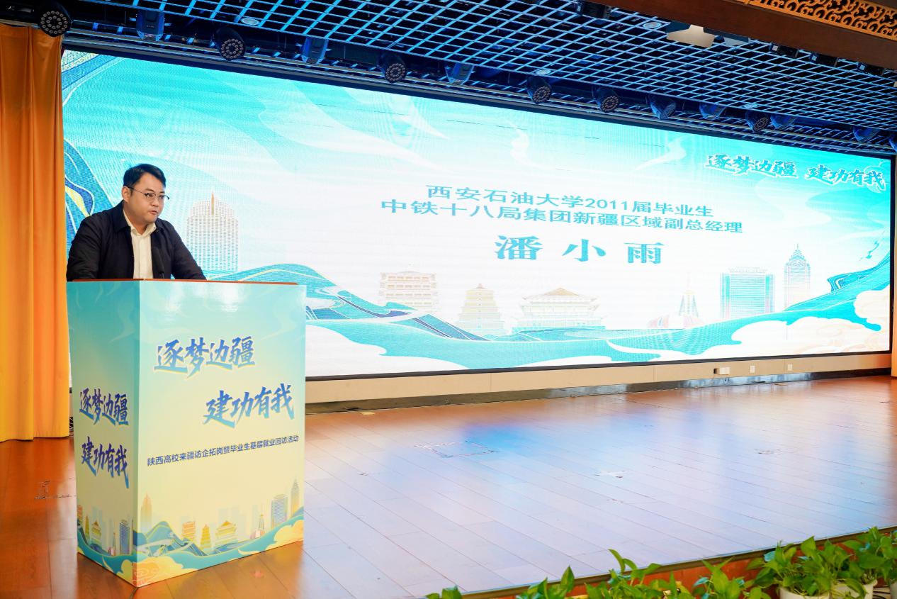 校企對(duì)接會(huì)上,新疆維吾爾自治區(qū)人社廳、新疆生產(chǎn)建設(shè)兵團(tuán)人社局相關(guān)領(lǐng)導(dǎo)及企業(yè)代表詳細(xì)介紹了新疆及兵團(tuán)在產(chǎn)業(yè)升級(jí)、民生改善等領(lǐng)域的發(fā)展機(jī)遇,重點(diǎn)闡述了新能源、現(xiàn)代農(nóng)業(yè)、礦產(chǎn)開(kāi)發(fā)等行業(yè)的人才需求導(dǎo)向。省教育廳副廳長(zhǎng)吳振磊推介了陜西高等教育學(xué)科優(yōu)勢(shì)與畢業(yè)生培養(yǎng)成果,強(qiáng)調(diào)了陜疆兩地合作的契合點(diǎn),提出建立常態(tài)化對(duì)接機(jī)制。我校副校長(zhǎng)種宇宏介紹學(xué)校辦學(xué)特色,強(qiáng)調(diào)學(xué)校在油氣勘探開(kāi)發(fā)、新能源利用等領(lǐng)域的積淀。我校畢業(yè)生潘小雨作為在疆就業(yè)優(yōu)秀代表,分享了扎根邊疆的工作成長(zhǎng)感悟。