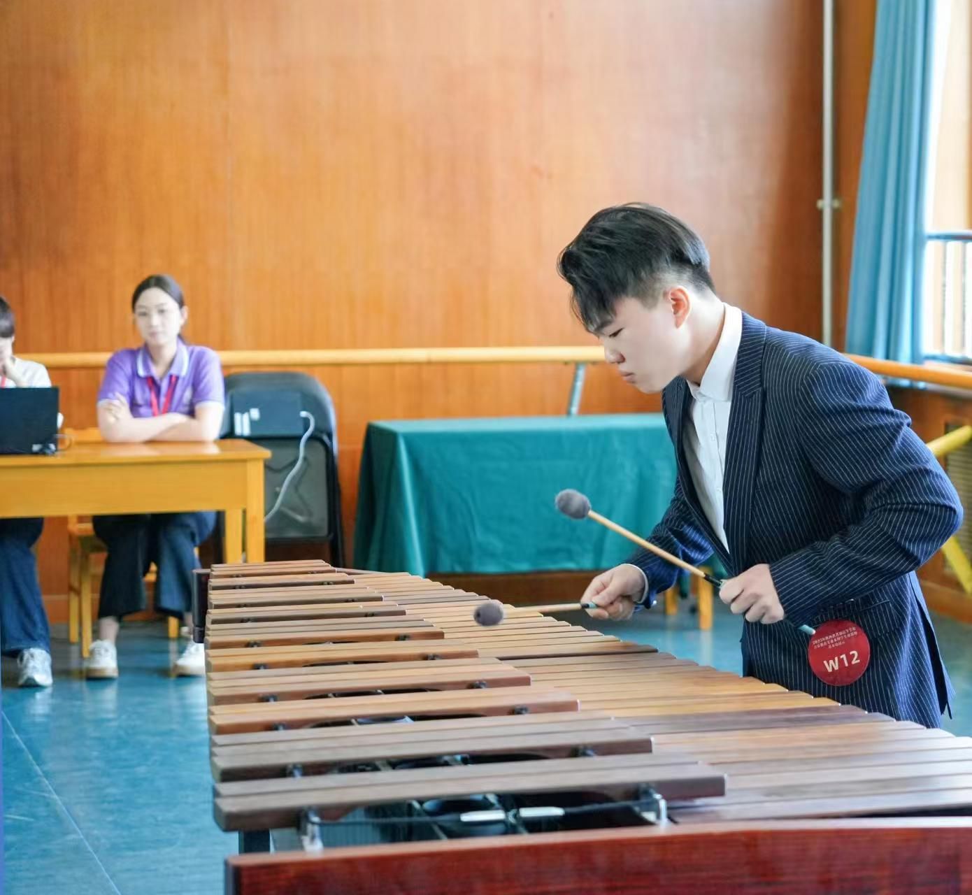 進(jìn)入國(guó)賽備賽階段,音樂(lè)系結(jié)合全國(guó)賽事更高要求,進(jìn)一步優(yōu)化訓(xùn)練方案,通過(guò)專家指導(dǎo)、模擬演練與個(gè)性化輔導(dǎo),重點(diǎn)提升學(xué)生在教學(xué)展示(微課)中的理論運(yùn)用與課堂設(shè)計(jì)能力、即興彈唱中的音樂(lè)創(chuàng)編能力、合唱指揮中的作品詮釋與現(xiàn)場(chǎng)把控能力。在全國(guó)舞臺(tái)上,康津榕沉著發(fā)揮,在教學(xué)微課中體現(xiàn)了良好的教學(xué)素養(yǎng),在即興彈唱中展示了流暢的創(chuàng)作能力,在合唱指揮中表現(xiàn)出精準(zhǔn)的音樂(lè)處理,并在馬林巴演奏中彰顯了扎實(shí)的演奏功底,最終從眾多參賽者中脫穎而出,榮獲個(gè)人全能三等獎(jiǎng)。