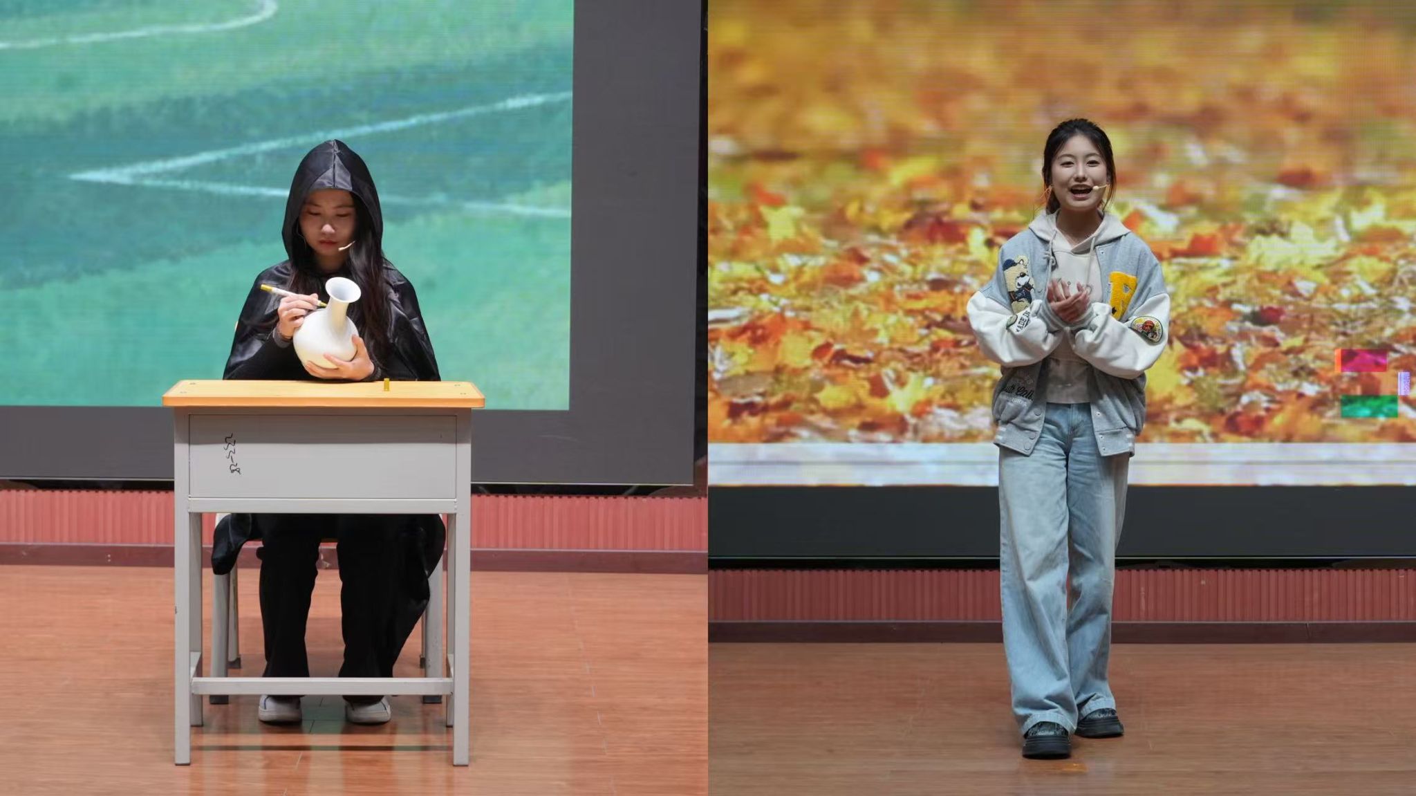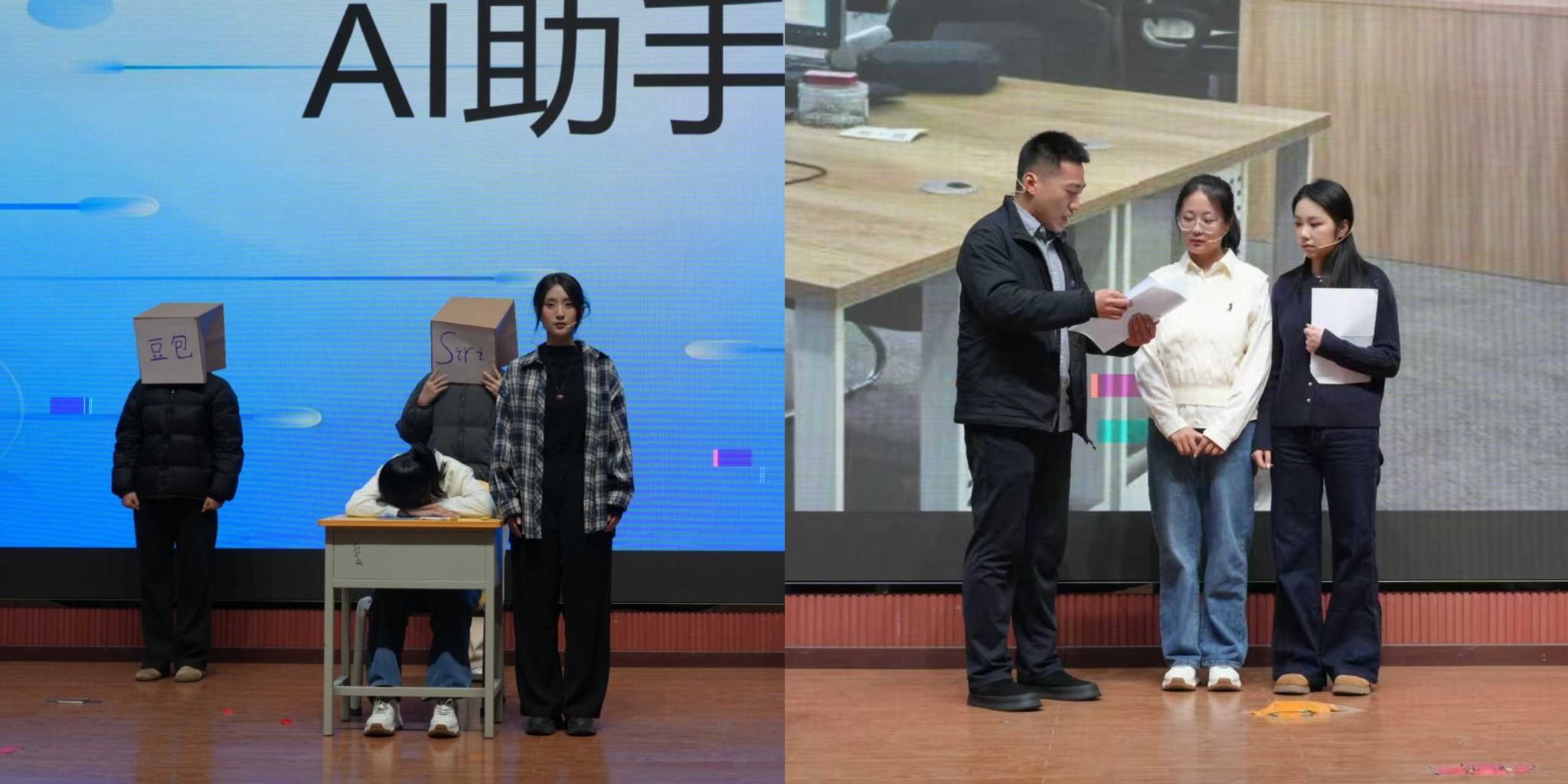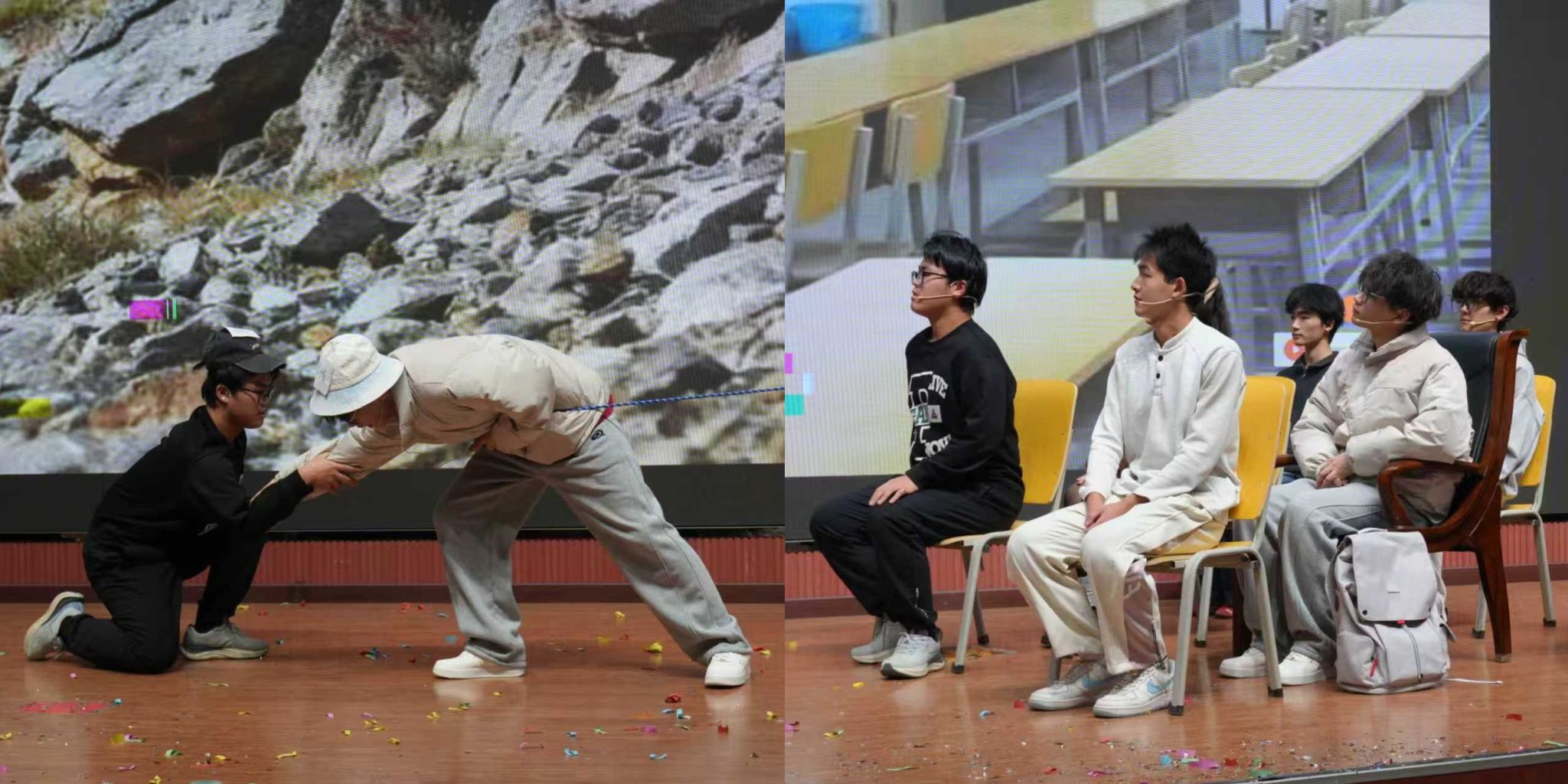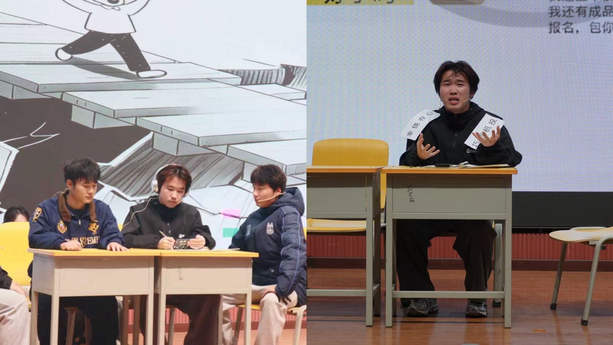 本次比賽共有16個學(xué)院17支隊伍報名,經(jīng)過前期的初賽后共有8支學(xué)院代表隊進(jìn)入決賽。八部作品以青春為底色,將大學(xué)生成長中的困惑、溫暖與蛻變搬上舞臺,在歡笑與動容的交織中,精彩得勾勒出當(dāng)代青年的心靈圖譜?!缎闹?,素履以往》聚焦大學(xué)生遇學(xué)業(yè)就業(yè)壓力陷入內(nèi)耗的熱點問題,演繹以情緒為核心,不斷闖關(guān),解開心結(jié),逐步自我接納與成長的歷程?!秷允嘏c誘禍》則圍繞大學(xué)生因保研問題誤入歧途走偏方向,在輔導(dǎo)員和同學(xué)的幫助下重拾信心,努力前進(jìn)的故事?!秲?yōu)秀標(biāo)簽的“詛咒”》以大學(xué)生面臨的“完美主義”心理枷鎖為引,展示了林薇這朵“優(yōu)秀玫瑰”如何掙脫刻板標(biāo)簽,尋回真實自我?!督鹂槨逢P(guān)注當(dāng)代大學(xué)生生活中的煩惱重重,以金繕喻人生,傳遞著青春總有磕絆,裂痕也并非缺憾的信條,金繕的哲思里,藏著關(guān)于成長的答案,直面青春挫折,傷痕終將化作成長金印。《“紙枷”》集中于思考隨著當(dāng)下各種AI軟件興起,大學(xué)生在學(xué)術(shù)規(guī)范與論文寫作中,如何正確使用AI軟件,回應(yīng)社會所關(guān)心的問題?!斗俏抑摇吠ㄟ^性格迥異的兩位新生互換處事方式,因不同碰撞,又因“成為彼此”而磨合,最終尋得了成長的平衡點?!稛艋鹬孛鳌逢P(guān)注大學(xué)生“討好型”問題,以燈火喻本心,直面期待枷鎖,將疲憊化作擁抱自我的溫暖光痕。巖層斷層藏著地球密碼,人心隔閡藏著蛻變契機,《斷層上的橋梁》講述了主角因?qū)W習(xí)問題被孤立,最終憑借自身努力和朋友幫助成功化解難題并取得了進(jìn)步的故事。
